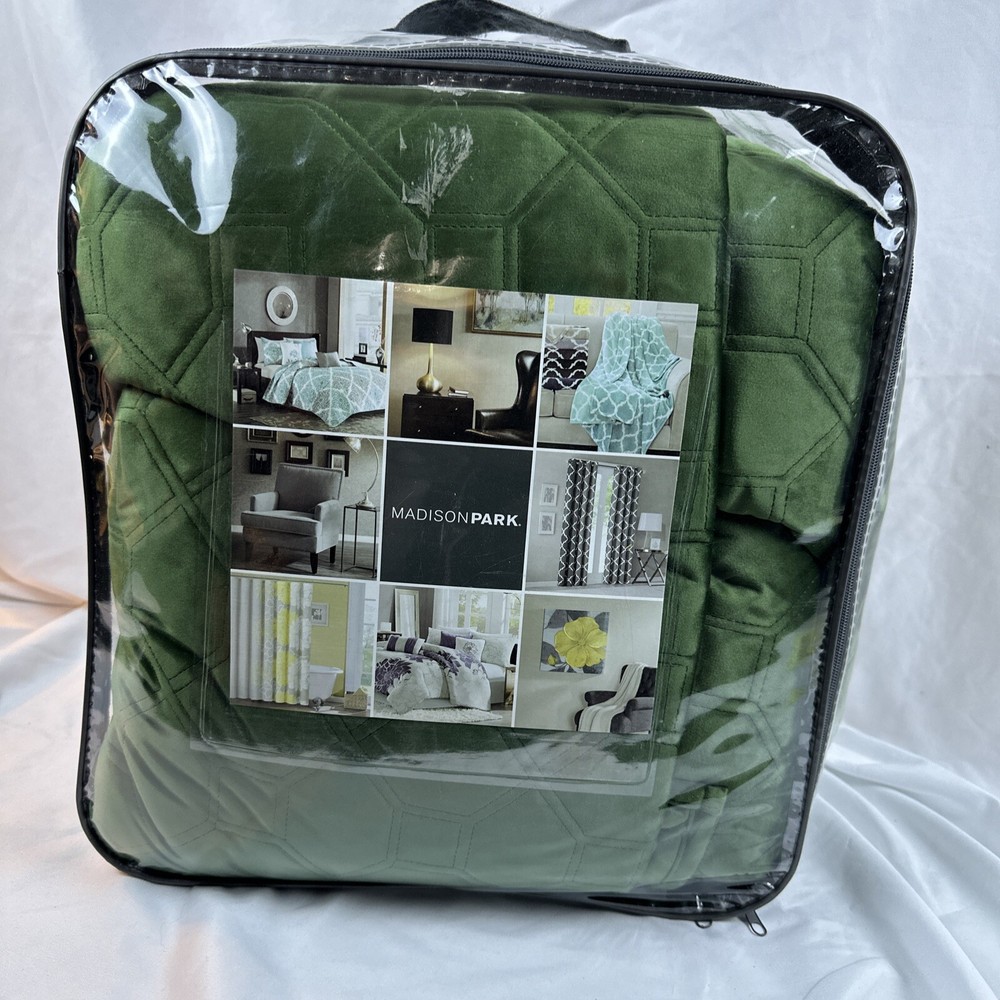 Add a touch of sophistication to your bedroom with this Madison Park Harper Quilt Set. The set includes a luxurious velvet quilt in a stunning green color with a unique geometric pattern. The quilt is expertly crafted with careful stitching and features a quilted design that adds depth and texture to your bedding. This quilt set is perfect for anyone looking to add a cozy and stylish touch to their bedroom. The set includes everything you need to create a comfortable and inviting space, including a full/queen size quilt and all the necessary materials. With its high-quality construction and attention to detail, this Madison Park Harper Quilt Set is sure to impress.