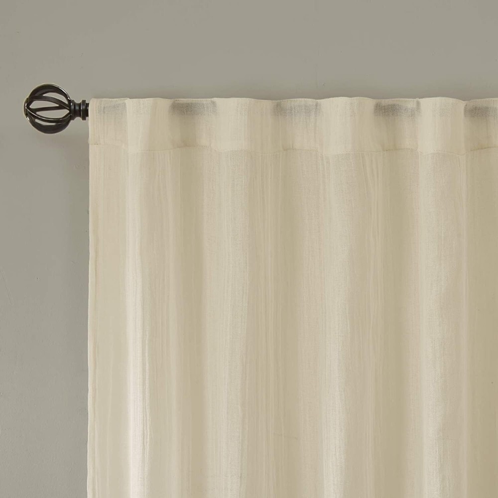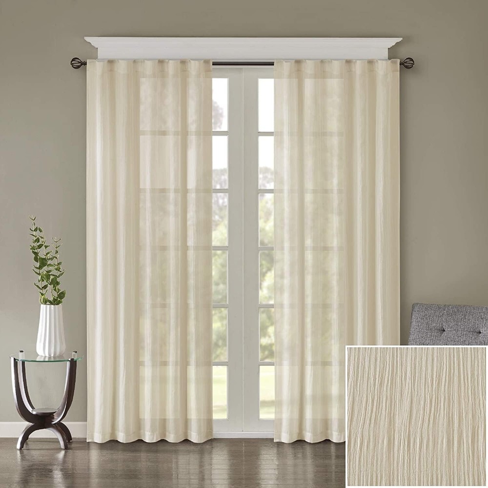 Enhance the look of your home with these elegant Madison Park Harper Solid Crushed Window Curtain Panels. These cream-colored panels are perfect for adding a touch of sophistication to any room. Measuring both panels = 84 inches in length and width, they are ideal for covering larger windows. Crafted from high-quality materials, these curtain panels are durable and long-lasting. The crushed fabric design adds depth and texture, making them the perfect addition to any modern or traditional home décor. These curtains are perfect for enhancing the ambiance of your living room, bedroom, or dining area.