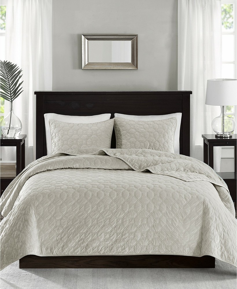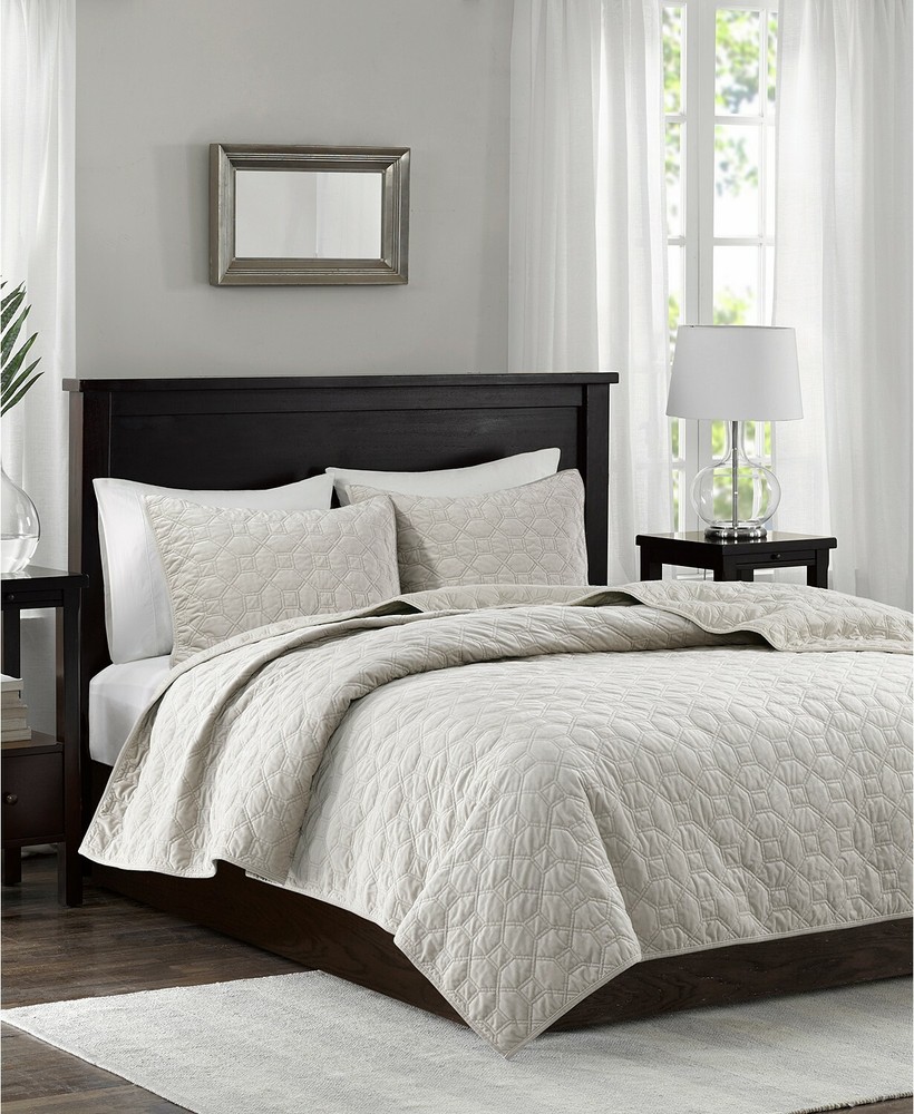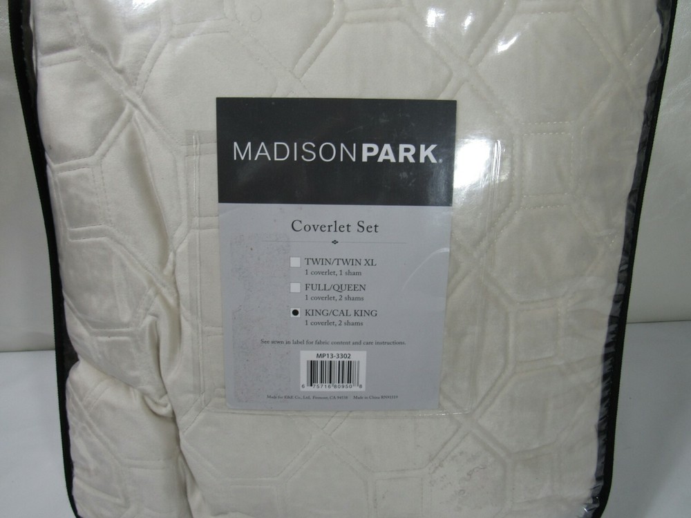 Madison Park Harper Velvet 3-Pc King/Cal King Quilted Coverlet T4102325 The Harper Velvet coverlet set from Madison Park is perfect for those seeking a casual and comfortable update to their bedroom. The coverlet can act as the perfect layering piece, adding a decorative element to your bedding ensemble with its gorgeous quilted design. Dimensions: coverlet 104" x 94", king shams 20" x 36" Set includes: 1 coverlet and 2 king shams Prewashed for soft hand feel Polyester with cotton fill Machine washable Imported