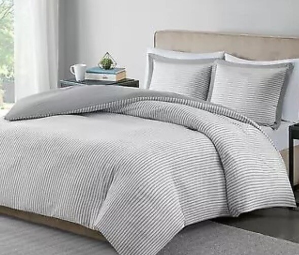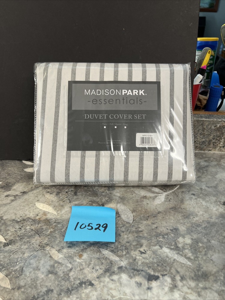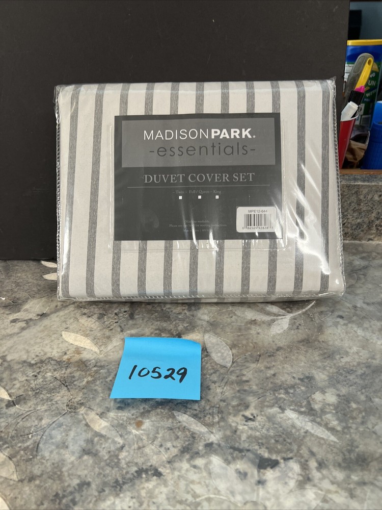 New Give your bedroom a fresh update with the Hayden duvet cover set from Madison Park Essentials. Sporting a striped pattern, the duvet cover and shams reverse to a solid color allowing you to mix and match styles for the perfect look. This set is made from an ultra-soft yarn-dyed fabric that is sure to keep you warm throughout the year. Set includes: duvet cover and two king shams Reversible Fabric: polyester 85 GSM Machine washable We are a small family run business and thank you for your business Comes from smoke free facility. Terms: Please read so there is no confusion about your purchase. *** FOR PO BOXES- If you have a PO Box and you want fedex shipping my than you will have to change the to your street address instead before paying. FedEx doesn’t ship to PO BOXES only USPS does.*** Many of our items are used misc items and used kitchen items. If the item is listed as used please see photos for condition. All used items need cleaned and have some scratches from use. Attention VeRO members: We're not affiliated with or endorsed by the companies mentioned in this listing. All trademarks and copyrights are acknowledged, they are only used for informative description of the items offered for sale. All items are authentic as evidenced in photos, legally acquired and owned, and hence covered under First Sale Doctrine. Unlawful VeRO removal of this listing will constitute perjury and result in legal action. FEEDBACK: I have a good track record regarding feedback. I am tired of stressing over feedback. There is NO reason to EVER leave me bad feedback. I offer FULL refunds with returns and that INCLUDES ME PAYING shippingj both waysides .. if it’s not as described you’re 100% covered financially INCLUDING your original shipping and the return shipping and the purchase price. Pretty good deal for buyers as this is NO RISK to you at all as I am assuming ALL risk and stand behind my products. RETURNS: If you need to return an item because I missed something all you have to do is open a return and send me a picture of what I missed. I will accept the return if I miss something EVERY TIME. Please note if you have to return an item you must return all pieces and ship in the shipping box I sent as well. RETURN PROCESS: In the unlikely event of a return where I miss something: do not email me and verbally abuse me for missing something. I am human and can miss things. My volume on eBay is really high and I don’t have the energy to deal with angry people. No reason to be angry as I will work with you and you will be out NO money so keep CALM, no reason to stress out with my store!! I got you covered! All you need to do is open a return, send me a photo and I got you covered. Once the return is open I will approve so you get a label ( that I pay for) Once I get it back your original purchase price and original shipping are refunded. 100% refunds!!! NO REASON for bad feedback!!! Shipping: ****Please make sure your address is correct before you pay as we can't change it per eBay policy. This is for your protection and ours. **** Winning bidder pays shipping Do you combine shipping for MULTIPLE ITEMS won? It automatically calculates now with the new shipping services for small items. We do not offer free shipping but our prices with shipping are generally very competitive. If you see free shipping it is because you’re not logged into your eBay account or there was an eBay error. Please check shipping quotes at time of purchase as the quoted shipping is correct. You will see this when you go to pay for the item. Most buyers know they need to be logged in but been having many ask why it’s not free when they go to pay. It’s because you were not logged in when you looked at the item but when you pay you must log in... ask before purchasing please if you have questions PLEASE READ CAREFULLY PRIOR TO BIDDING ON ITEM(S) If you are buying a used item it may have scratches scuffs. Please review all 12 photos to see condition. Photos of used items are of actual product you will receive. We do our best to note any issues we see but we are human so take a look at Pics. We take 12 pics from all angles for your review. It is very sad that I have to even mention this but if you are buying something that takes a bulb and you see it works in my photos that means the bulb worked when I listed it. I am not responsible for the longevity of a light bulb. If one burns out plan on replacing it yourself... on that note... use the same mindset for batteries. Don’t plan on batteries lasting the life of a product if I say it comes with batteries. Sad I have to even mention this and not trying to be difficult but I have lost a lot of hair because of buyers arguing about 10 cent bulbs and life of batteries.. if your a seller you get it!! :) For you scammers out there our store policy for opening claims: we will 100% of the time have claims returned to us. If you open a claim just to get a product for free it will not work with our store. We do not allow buyers to keep products if they claim damaged. We will pay to have it returned and never allow buyer to keep product. Been on eBay a long time and have seen too many scammers. Now with that said we will 100% work with all our buyers to make your purchase / potential return process as smooth as possible. Just want everyone to know if something happens in shipping or we miss something in a listing you are 100% covered we just will not allow buyer to keep products for free when scammers can just claim damaged and keep products. Just not fair YOU WILL AUTOMATICALLY RECEIVE TRACKING INFORMATION directly for the carrier once your package ships. Be sure to check your ‘junk mail’ box, as this type of email FREQUENTLY finds its way there. INTERNATIONAL SHIPPING I only ship through global shipping. When tracking is uploaded it will show as delivered at Kentucky. That is the global shipping hub. From here global shipping is in charge of the package. May take days for it t