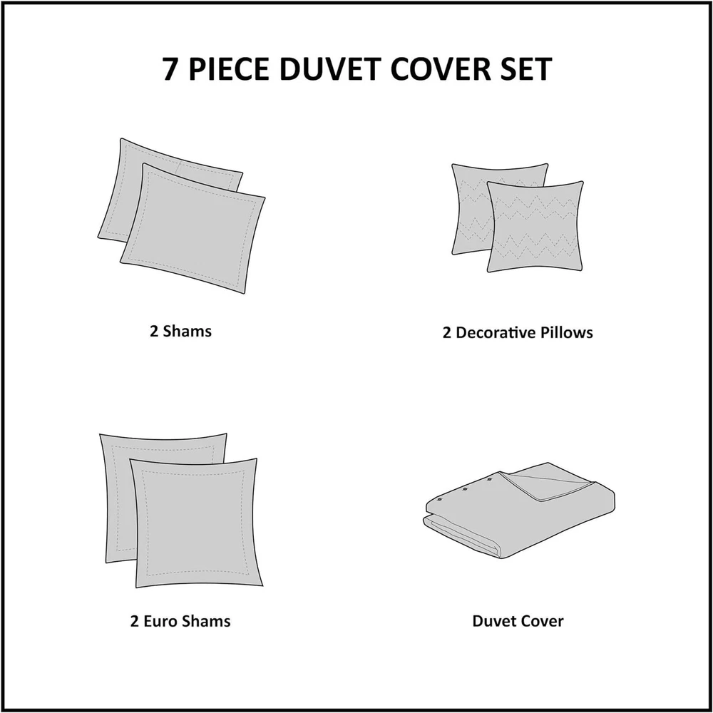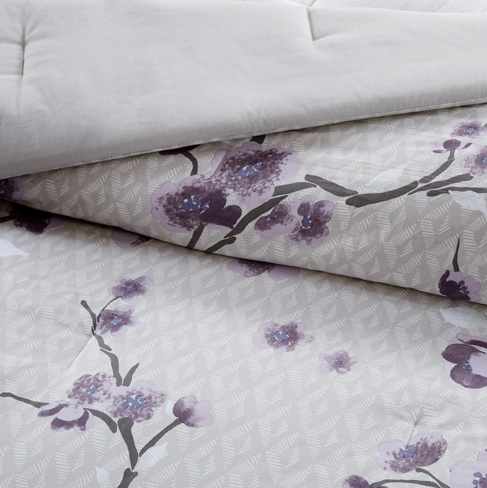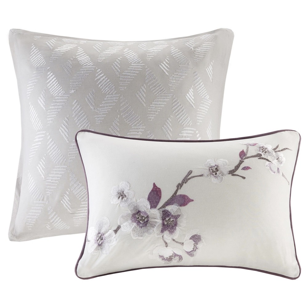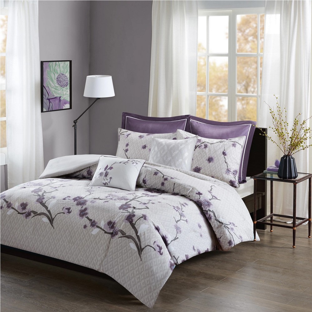 The Madison Park Holly 7 Piece Cotton Duvet Cover Set will transform your bedroom decor with charm and elegance. The cotton sateen fabric has a gray ish taupe diamond background with a lovely floral print in purple, grays, and soft whites on the duvet cover and shams, for a graceful transitional look. A button closure secures a comforter insert within the duvet cover and inside corner ties prevent it from shifting (insert is NOT included). Set includes: king/California king duvet (104" x 92"), two king shams (20" x 36"), two European shams (26" x 26" + 2") and two decorative pillows (18" x 18", 12" x 18") Madison Park Holly 7-Pc. Duvet Cover Set Retail Price $225.00 On Sale Now $ 55.00 #Madison Park, #Duvet Cover, #King/Cal King, #Sale The Madison Park Holly 7 Piece Cotton Duvet Cover Set will transform your bedroom decor with charm and elegance. The cotton sateen fabric has a gray ish taupe diamond background with a lovely floral print in purple, grays, and soft whites on the duvet cover and shams, for a graceful transitional look. A button closure secures a comforter insert within the duvet cover and inside corner ties prevent it from shifting (insert is NOT included). Set includes: king/California king duvet (104" x 92"), two king shams (20" x 36"), two European shams (26" x 26" + 2") and two decorative pillows (18" x 18", 12" x 18") 100% Authentic - New with tags Color: Purple/Grey Size: King/Cal King Fabric Composition: 100% Cotton Number: MP12-4170 Origin: Pakistan Care: Machine wash