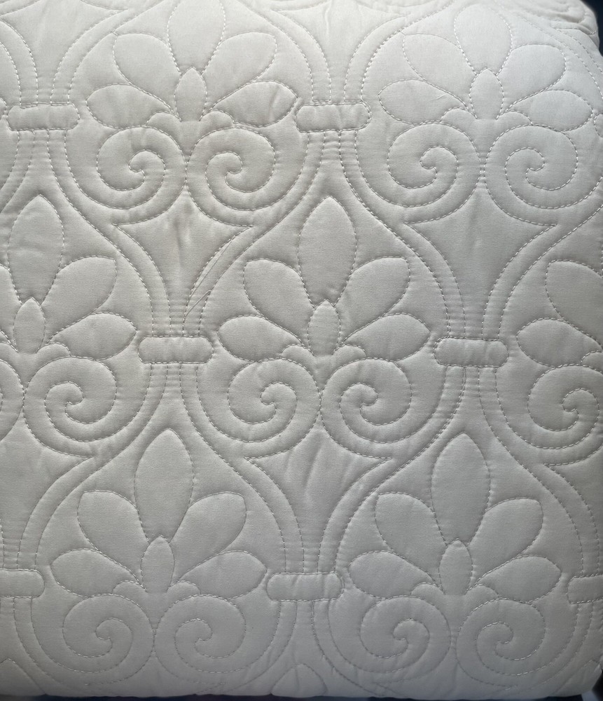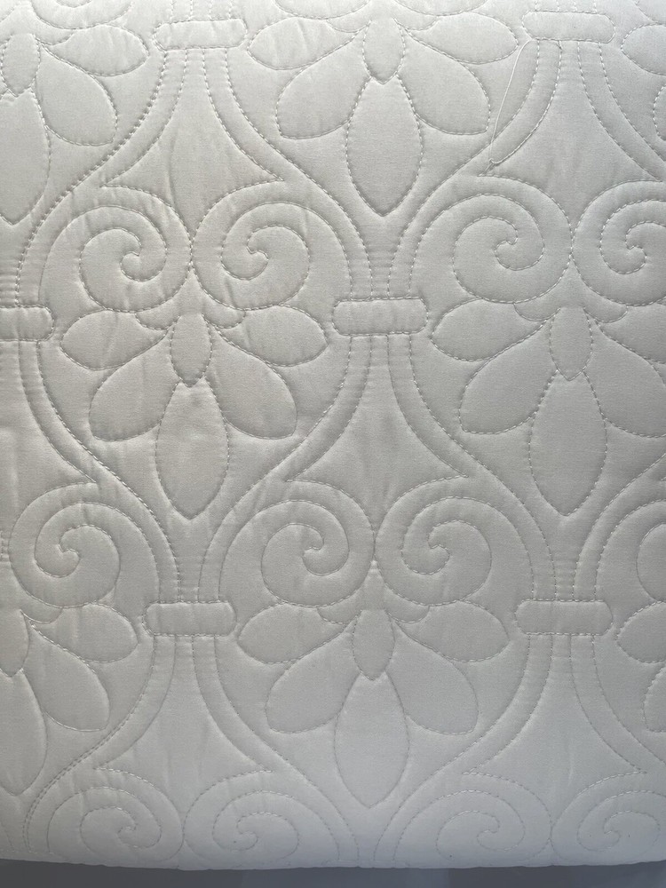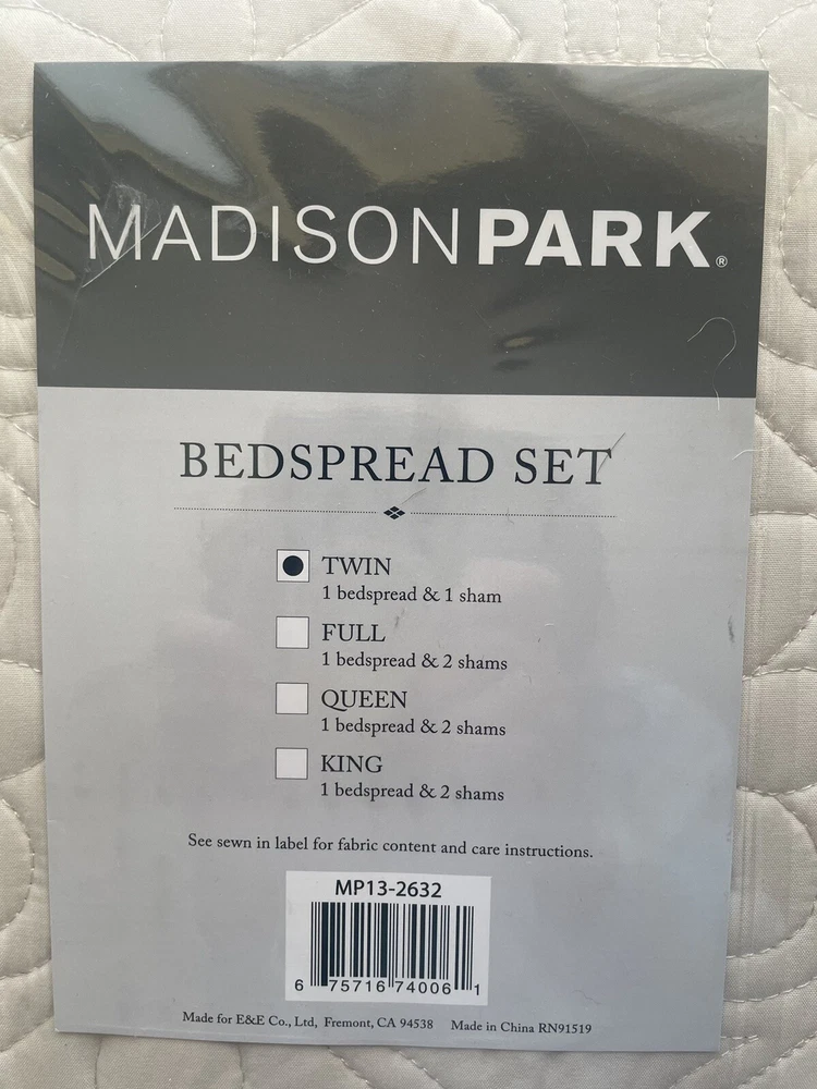 Home Collection 2pc Twin/Twin XL Over Size Elegant Embossed Bedspread Set Light Weight Solid Beige one Sham. New See tag for material, 90 cotton fiber, 10 olefin fiber.