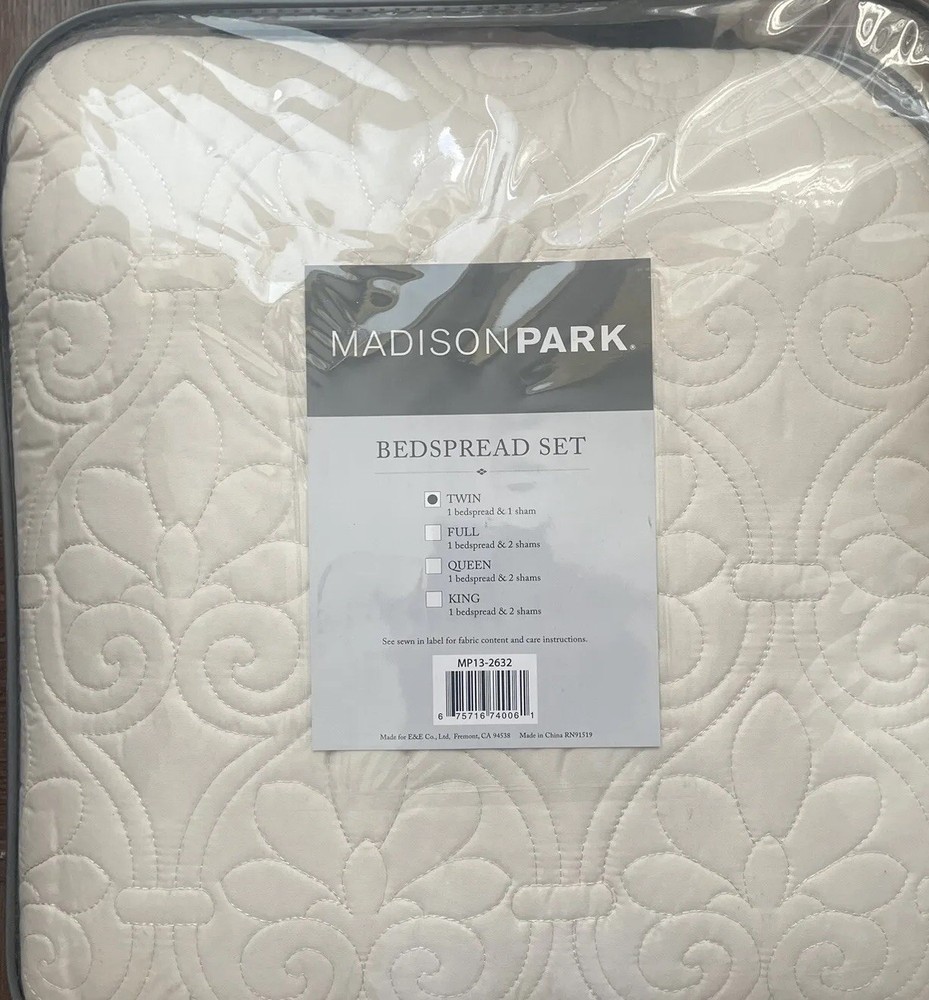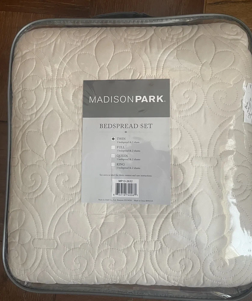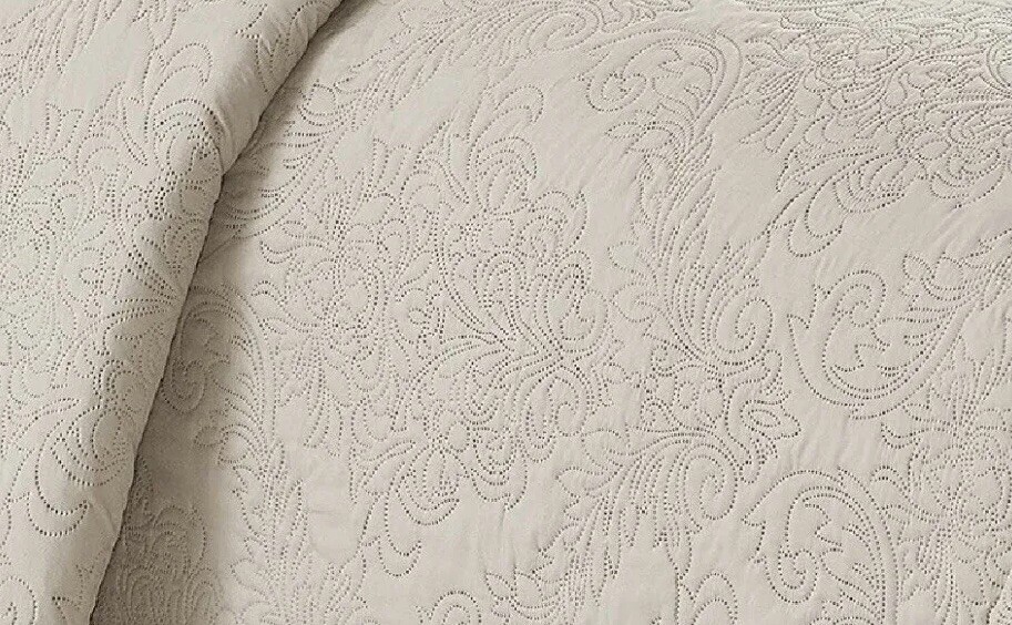Home Collection 2pc Twin/Twin XL Over Size Elegant Embossed Bedspread Set Light Weight Solid Beige one Sham. New See tag for material, 90 cotton fiber, 10 olefin fiber....