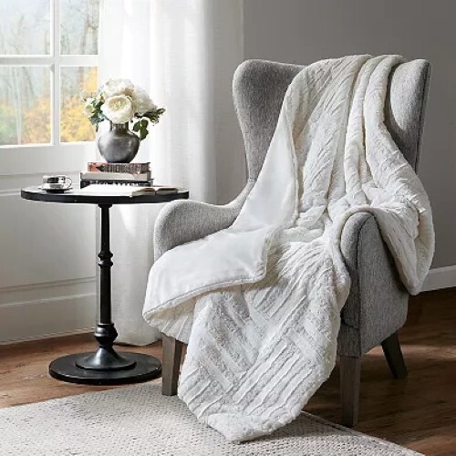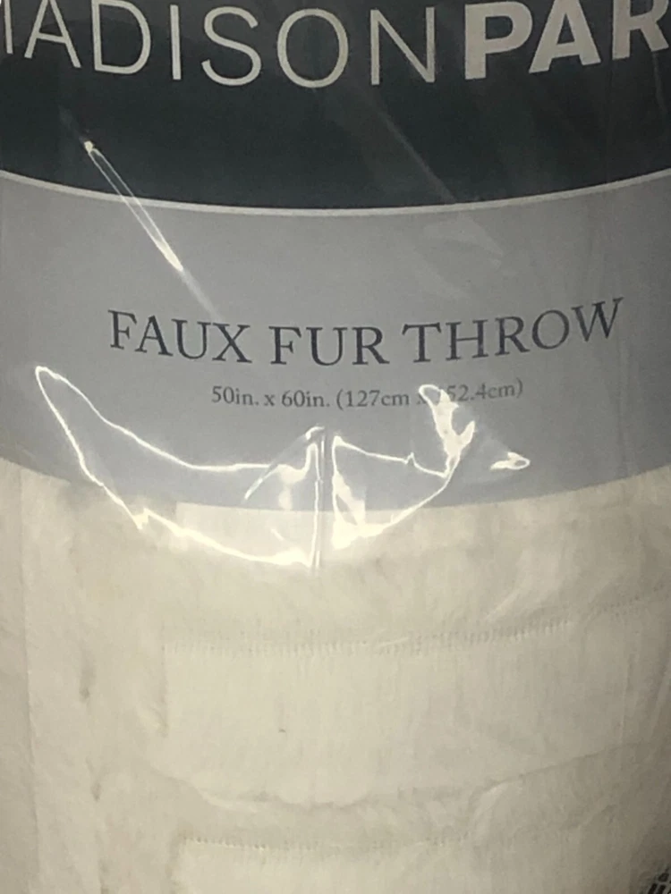 Madison Park WHITE IVORY Arctic Down-Alternative Ultra Plush Throw Blanket New with Tags! FEATURES 50" x 60" Faux fur checkboard pattern Ultra soft plush fabric Faux mink reverse Minor shedding is expected with faux fur material and should subside after 3-4 washes CONSTRUCTION & CARE Polyester Down-alternative fill Machine wash Imported Actual item Photos. Don't hesitate to contact us before purchasing if you have questions about the item's condition and shipping cost. If you receive an item with a noticeable flaw not shown in the photos, please contact us before leaving feedback. We strive to describe all items thoroughly and accurately. Please ask any questions you have before offering or buying. We will do our best to return your messages within 24 hours. Happy Shopping!