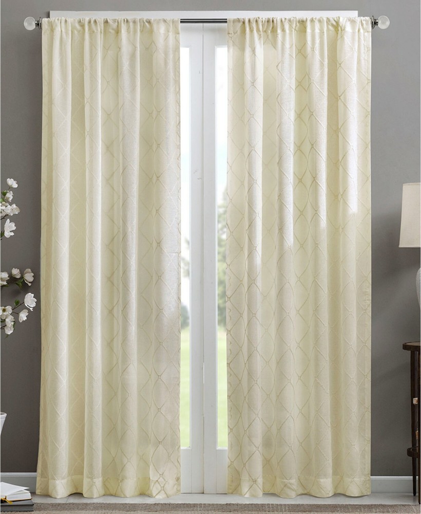 Color: Ivory Size: 50" x 84" Give any room a stylish glow with soft lightweight sheer and shimmering diamond embroidery of this Irina window panel from Madison Park. Dimensions: 50" x 84" Rod pocket header; fits rods up to 1.25" diameter Diamond embroidery Sheer fabric NOTE: photo displays two panels for a finished look, but this item contains only 1 panel. Each panel is sold individually. Polyester Machine washable Imported