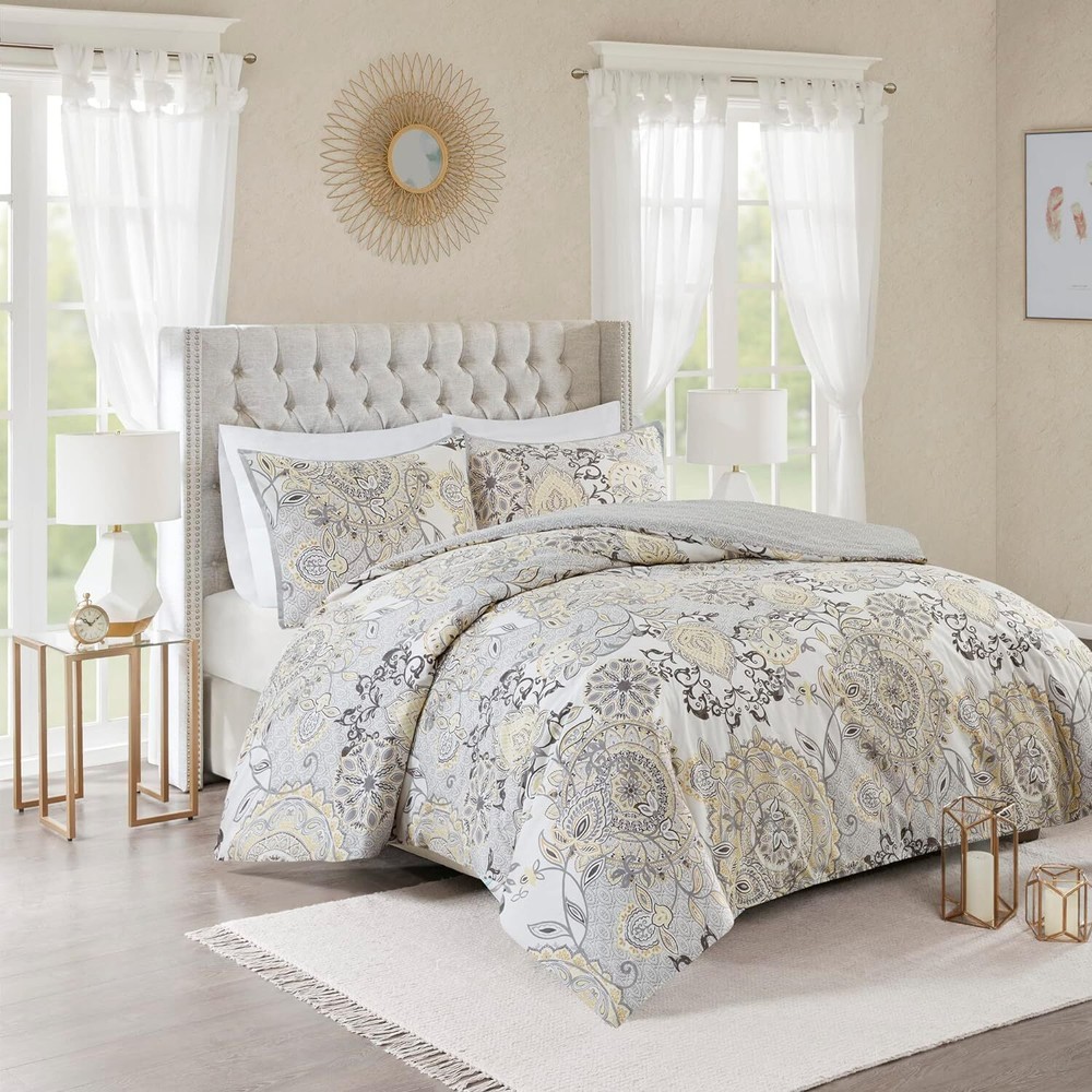 View More Madison Park Items Madison Park Isla Reversible 3-Pc. Duvet Cover Set, Full/Queen Bedding, Yellow Refresh your bedroom with the Madison Park Isla 3 Piece Cotton Printed Reversible Duvet Cover Set. The 100% cotton duvet cover and shams flaunt a botanical floral design with a medallion motif printed in soft watercolor hues. A printed pattern on the reverse complements the top of the bed, completing the shabby chic look. A button closure secures a comforter insert within the duvet cover and inside corner ties prevent it from shifting (insert is NOT included). This bedding set is also OEKO-TEX certified, meaning it does not contain any harmful substances or chemicals to ensure quality comfort and wellness. 52% Polyester, 48% Cotton The 100% cotton duvet cover and shams flaunt a botanical floral design with a medallion motif printed in soft watercolor hues A button closure secures a comforter insert within the duvet cover and inside corner ties prevent it from shifting (insert is NOT included) This bedding set is also OEKO-TEX certified, meaning it does not contain any harmful substances or chemicals to ensure quality comfort and wellness Set include: 1 Duvet Cover: 90"W x 90"L, 2 Standard Shams: 20"W x 26"L + 0.5"D Care instructions: Machine wash cold, gentle cycle, and separately. Do not bleach. Tumble dry low, remove promptly. Do not iron Shipping Details Payment Information Customer Service Shipping Cost We generally ship FREE in USA, otherwise please look item shipping info. For international buyers we welcome combining. Delivery Time We generally ship same business day, expedite shipping if otherwise stated. International Buyers Import duties, taxes, and charges are not included in the item price or shipping cost. These charges are the buyer's responsibility. Please check with your country's customs office to determine what these additional costs will be prior to bidding or buying. We accept the PayPal Please contact us if you have any questions. Product Information Feel free to ask for more photos & info Product photos are assumed to be part of the description. Contact Information You can contact us anytime before & after purchase We wil reply your message in 24h. FAST'N FREE shipping to USA EASY RETURNS in 30 days 100% AUTHENTIC large inventory 100% CUSTOMER satisfaction guarantee Private Sellers Network Our aim is; To serve best products of famous brands with reasonable prices to our customers. All our products are authentic. Please take a look our other merchandise and follow us. "Your happiness is our joy..." Visit Store Sign Up for Newsletter View Reviews