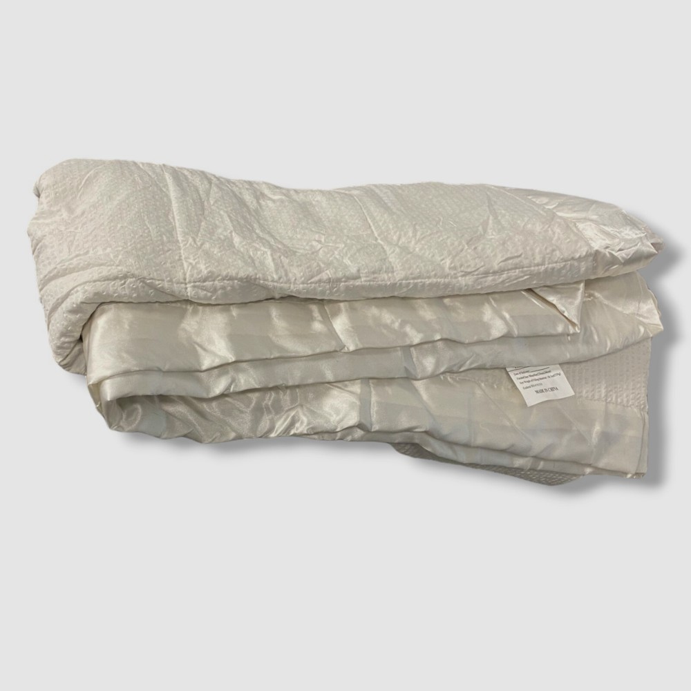 Madison Park Ivory Cambria Oversized Blanket with Satin Trim, Full/Queen Description Approx. dimensions: 90" x 96" 3M Scotchgard stain release to keep blanket last longer Oversized for better coverage Hypoallergenic down alternative filling Embossed texture with 3" satin binding Classic box quilting design in 5 different colorways Machine washable Imported About Us We sell only 100% authentic clothing from new with tags to gently used. We have a 100% authentic or money back guarantee on every item we sell. Items are listed daily so make sure to put us on your favorite! We have been in business for over 10 years selling tens of thousands of designer items. We strive to meet your designer needs at a quality price! Payment Shipping Returns Payment accepted via paypal, credit/debit card. Shipping is usually within 24 hours of purchase (M-F). Super fast service. Tracked delivery. 100% satisfaction guaranteed. Please review our eBay return policy for more details.