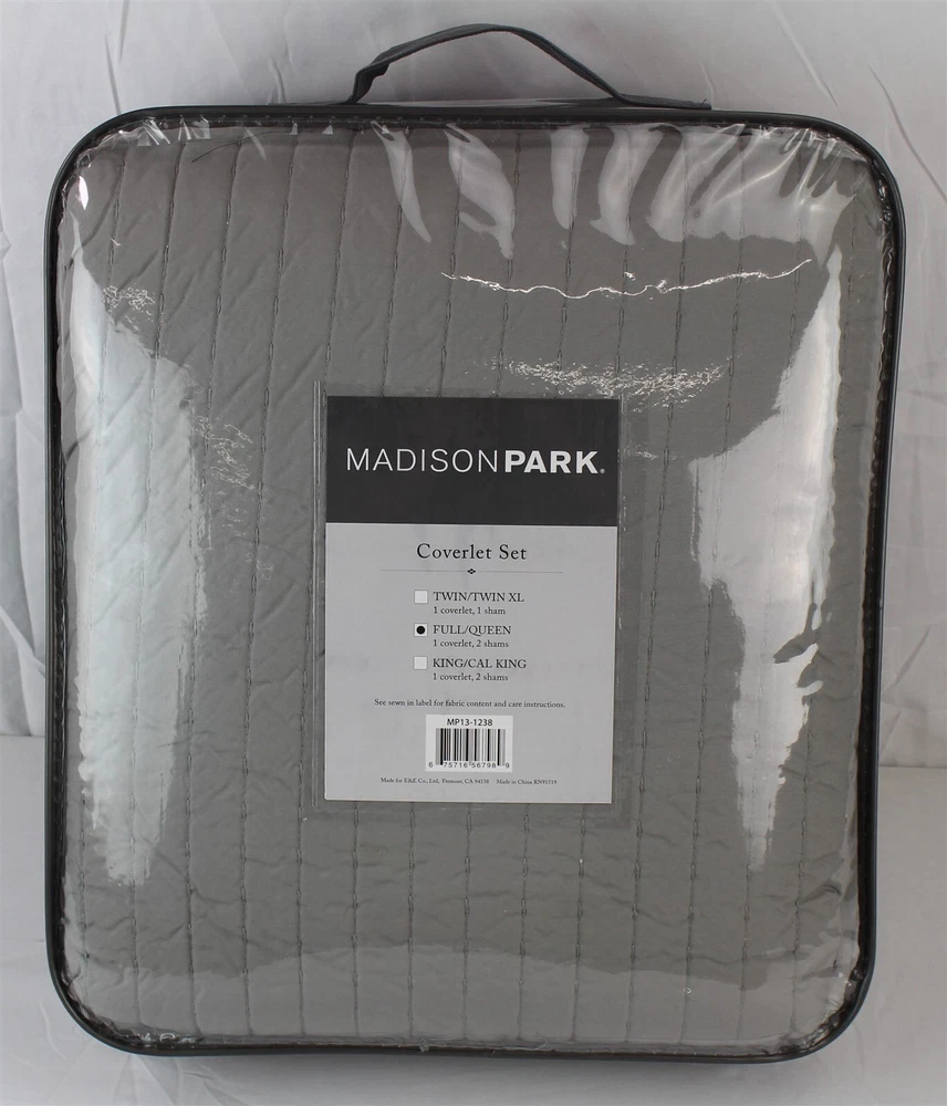 Condition Description: New with tags Madison Park Keaton 3 Piece Reversible Coverlet Set – Grey - Full/Queen Details: The Madison Park Keaton Reversible Coverlet Set provides a simple and casual update to your bed. This solid grey reversible coverlet features pick stitch channel quilting to keep the cotton-rich filling secure and create a cozy farmhouse look. Matching shams complement the coverlet to complete the reversible bedding set. This coverlet also has an antimicrobial treatment that provides built-in freshness protection, reducing the growth of odor causing bacteria to keep fabric lasting longer. Made from soft brushed microfiber, this reversible coverlet set is perfect for summer or as an extra layer in cold weather. Includes One (1) Coverlet and Two (2) Pillow Shams Color: Grey Style: Farmhouse, Casual Sleek and simple reversible coverlet quilt set that is perfect for summer or layer it on for cold weather Soft microfiber quilted in cotton filling, pick stitch channel quilting Anti-microbial treatment for health and wellness - helps reduce the growth of odor causing bacteria and keeps fabric lasting longer Outside Material: 100% Polyester Fill Material: 90% Cotton/10% Other Fibers Care Instruction: Machine Washable Dimensions: Full/Queen Coverlet: 90 inches wide x 90 inches long Two (2) Matching Standard Shams: 20 inches wide x 26 inches long - All dimensions are approximate and may vary slightly from the listed information. -Color Display Disclaimer: Some monitors display colors differently than others, so the shade of the color shown on your monitor may vary slightly from the color of the item you will be receiving. Please Read Carefully And Completely Before Purchase/Bidding Contact Us Do you have a question about an item you’re interested in, or received an item that wasn’t exactly what you were expecting? No problem. At Bargains and Buyouts Greenhills our dedicated team of Customer Service Representatives are ready and willing to help you with any problem, question, or concern you may have, and wish to share; just remember to be patient with us while we work through the issue, and ALWAYS remember to contact us BEFORE leaving feedback or DSR stars. We’ll fix it, find it, or explain it for you – guaranteed. We’re here for you: Monday – Friday 9 AM – 4 PM EST (Weekends and Holidays are non-business days) (When making an offer please note the hours above, we will get back to you as soon as we can) Want to get our attention? Email us through eBay messages here . Payment Terms We only accept payments made through PayPal at this time. If you do not have a PayPal account, you may still use your Credit Card through PayPal's system by simply using their "Check Out as a Guest" option. Please use the eBay checkout system to make your payment. Please do not send payments directly to our PayPal account. If you need a combined invoice or if you have any additional questions, please contact us. Please Note: If you won an auction or purchased one of our fixed price items you have 4 days to pay for this item. After 4 days an eBay unpaid item case will be opened. Shipping Information Did you just order a product from us, or are thinking about bidding on something, but aren't sure about the shipping? No problem! The information on this page should answer just about any question you may have about our shipping policy. If by the end you still have any questions or concerns, please let us know here! Sorry for any inconvenience but at this time we do not offer shipping discounts to multiple item purchases. Please Note: FedEx does not ship to P.O. Boxes. If your default address is a P.O. Box please change it or contact us with a physical address you would like your item shipped. Also, if you have multiple addresses listed for your eBay account please provide us with the address where you would like this item shipped We ship all orders FASTwithonly 1-2 business day handling time! (Business Days: Mon,Tues,Wed,Thurs,Fri. Auctions or Fixed Priced items purchased on Friday after 10am EST will ship out Monday. This also applies to orders place on Saturday and Sunday) How We Ship We currently ship orders one of three ways: FedEx, USPS Priority Mail, and UPS. Unfortunately, we are unable to offer any expedited shipping services at this time. Please Note: Items listed as Standard Shipping can come any of these three services. You will be notified in your shipping confirmation what service is being used and be provided a tracking number for that service. We do this so we can pass on as much of the savings we can to our customers and to reduce the need to charge our customers shipping. When we ship items between 1 and 100 lbs, we use one of three services: FedEx Ground Heavy or large items will be shipped via FedEx Ground. This is their regular shipping service where the item is picked up from us by FedEx, and delivered to you by FedEx. This shipping method can take anywhere from 2-8 business days, so we ask that all customers are patient with us during this shipping period as well. The tracking number received for this method of shipment will only be able to be tracked through FedEx’s website. UPS Ground Heavy or large items will be shipped via UPS Ground. This is their regular shipping service where the item is picked up from us by UPS, and delivered to you by UPS. This shipping method can take anywhere from 2-8 business days, so we ask that all customers are patient with us during this shipping period as well. The tracking number received for this method of shipment will only be able to be tracked through UPS’s website. USPS Priority Mail Some smaller items that will be shipped USPS Priority mail. This service includes fast 1-3 business day delivery times with tracking on the USPS website. Our (Hassle-free!) Return Policy and Instructions If you are not completely satisfied with your purchase then please contact us immediately. Please contact us within 7 days after receiving the item. 