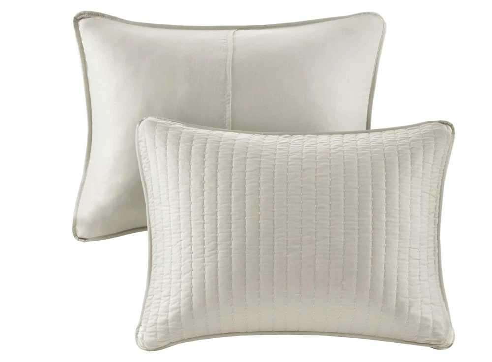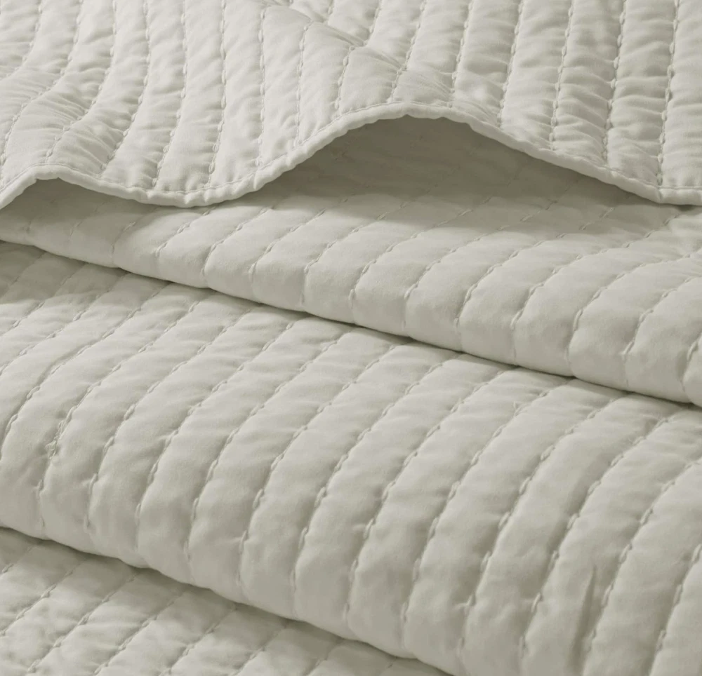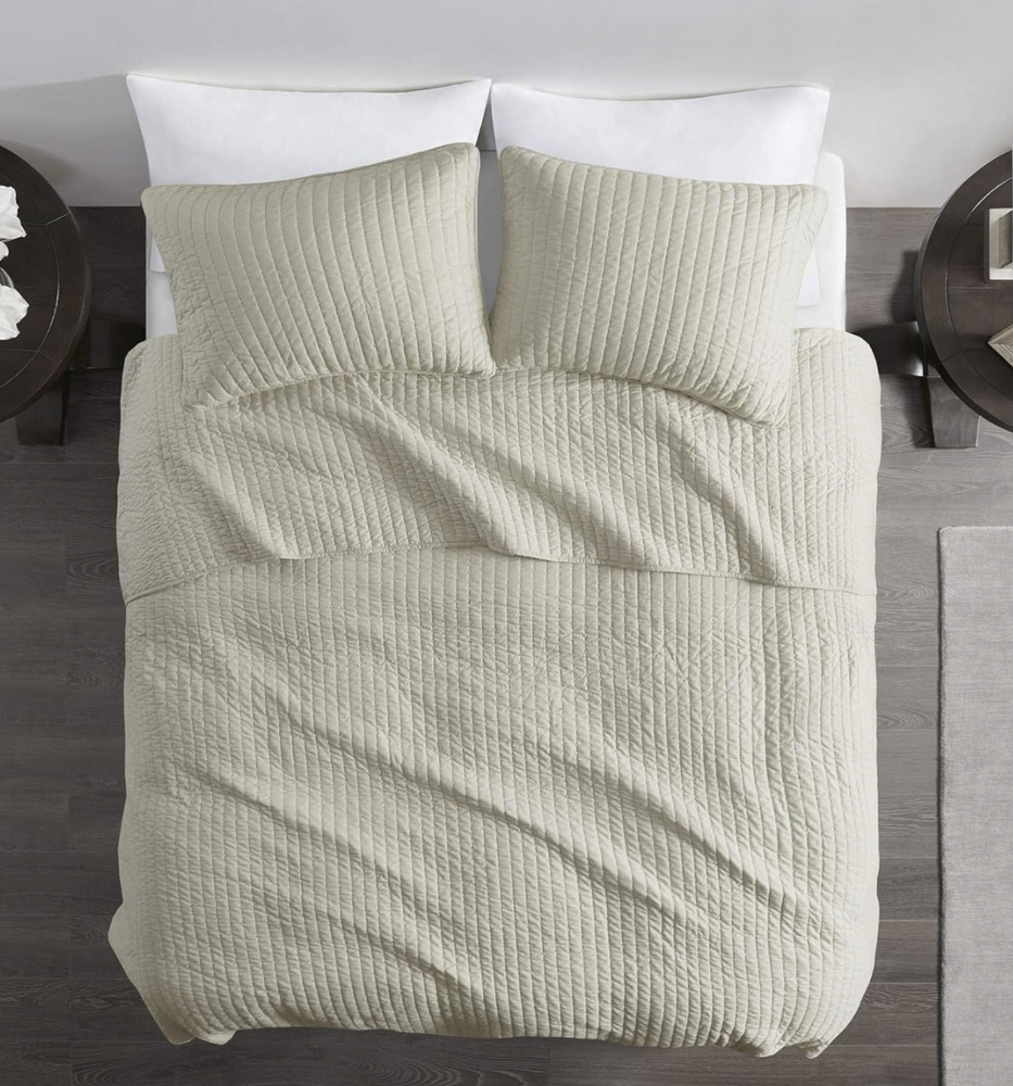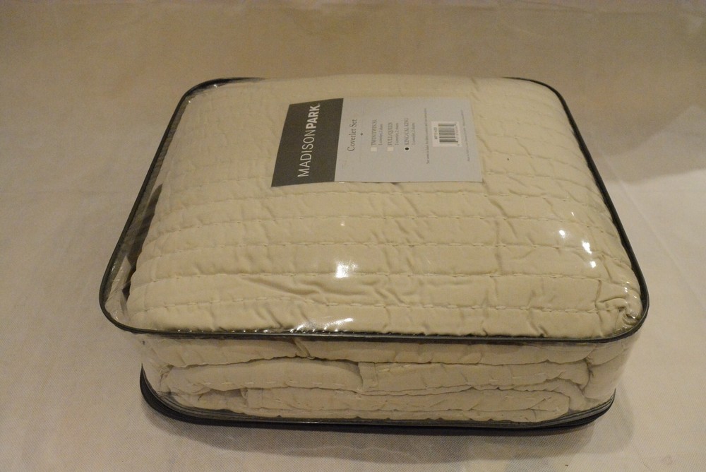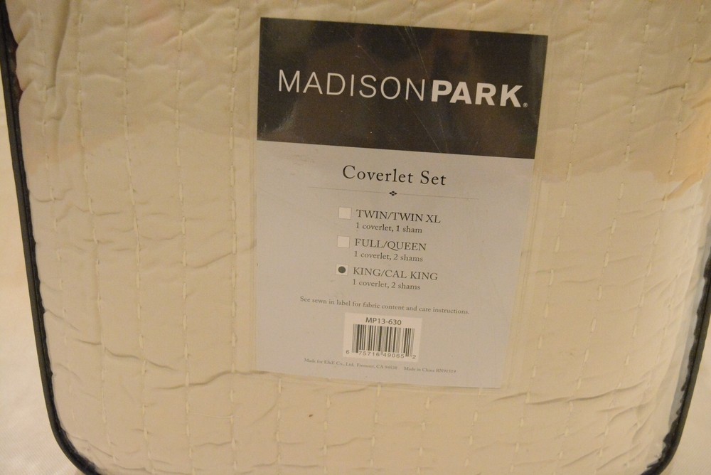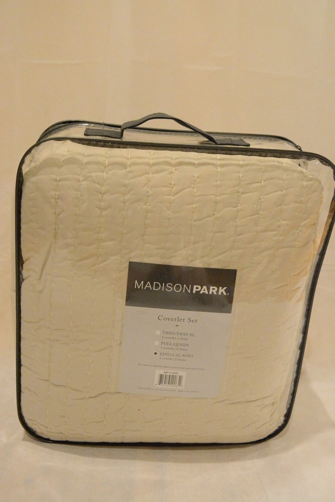 Madison Park Keaton Quilt Set-Casual Channel Stitching Design All Season, Lightweight Coverlet Bedspread Bedding, Shams, King/Cal King(104"x94"), Stripe Cream, 3 Piece Color may vary due to the lighting! 100% Polyester The Madison Park Keaton Reversible Coverlet Set provides a simple and casual update to your bed. This solid black reversible coverlet features pick stitch channel quilting to keep the cotton-rich filling secure and create a cozy farmhouse look. Set includes: 1 Coverlet: 104"W x 94"L, 2 King Shams: 20"W x 36"L Color: Cream Care instructions: Machine wash cold, gentle cycle, and separately. Do not bleach. Tumble dry low, remove promptly. Do not iron. If there is no free movement in the washer or dryer, use large capacity commercial washer/dryer. Domestic Shipping: I ship within 1 business day of receiving cleared payment through paypal. International Shipping: International shipping is cost varies by buyer location and country. International buyer: - Import duties, taxes, and charges are not included in the item price or shipping cost. These charges are buyers's responsibility. - Check with your local custom office to determine what the additional cost will be prior to bidding or buying. - If your package is held up by your local custom office, please contact them as soon as possible and pay off the duty so that they can release your package. * International shipping does not accept return.