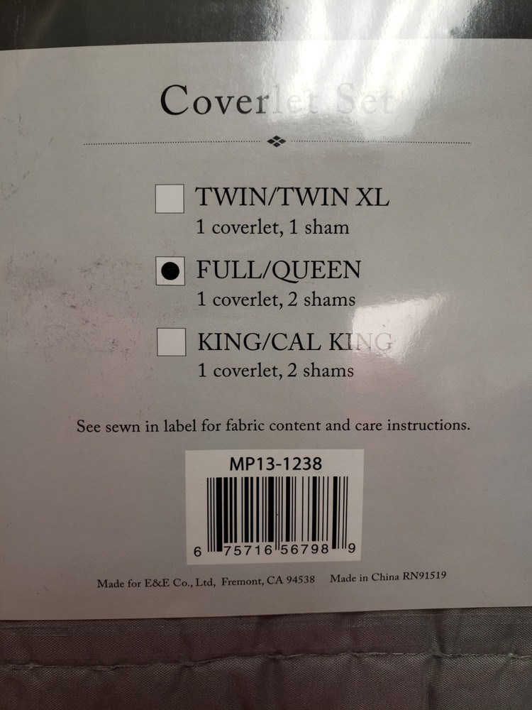 Comforter set as described, arrived in new condition, well-protected from the rough journey. Seller did a great job packaging the large comforter and quickly shipping it. Very pleased with my purchase, no issues, and a very good value.