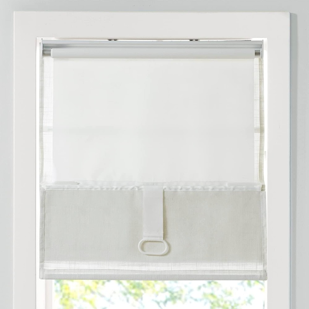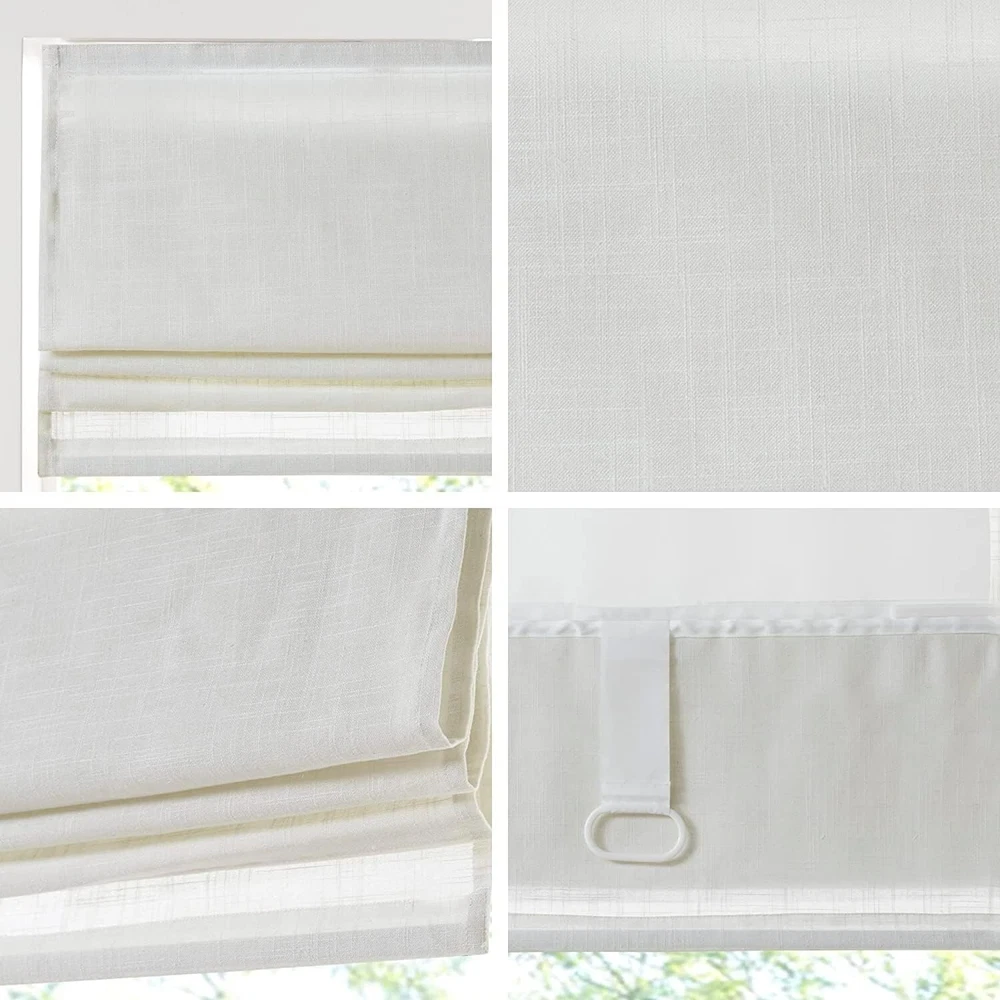 Madison Park Kyler Cordless Roman Shades - Single Panel, Lightweight Linen Blend Fabric, Natural Design, Easy Installation, Light Filtering Window Blind, Bedroom, Living Room Decor 34" x 64" ( Linen Blend Fabric White) List Price: $81.99 Amazon sale price $72.10 About this item 85% Polyester, 15% Linen This roman shade features a beautifully textured linen blend fabric in a soft white tone creating a natural look and feel, while the lightweight fabric lets the right amount of light into your home for a bright, yet soft and airy touch Casual and stylish, the Madison Park Kyler Linen Blend Light Filtering Roman Shade is an easy addition to freshen up any space The cordless retraction mechanism makes it easy to open and close with weighted hem to keep it in place It is Oeko-Tex Certified to includes no harmful substances or chemicals for better quality and wellness Only 1 Roman Shade is included. Size: 34"W x 64"L. Slat Depth - Front to back: 1.5", Mounting Depth: 3", Head Rail: 31"W x 1.5"D x 2.5"H (True to size). Assembly required, hardware included Product Description Casual and stylish, the Madison Park Kyler Linen Blend Light Filtering Roman Shade is an easy addition to freshen up any space. This roman shade features a beautifully textured linen blend fabric in a soft white tone creating a natural look and feel, while the lightweight fabric lets the right amount of light into your home for a bright, yet soft and airy touch. The cordless retraction mechanism makes it easy to open and close the window shade throughout the day, while the detachable fabric face allows for easier assembly and cleaning by lightly shaking or dusting. Though detachable from the hook and loop fastener, the top face fabric is NOT fully removable. Ready to install right out of the packaging, this roman shade can be hung inside or above the window pane allowing you to find the perfect fit for your home decor. Each shade is also OEKO-TEX certified, meaning it does not contain any harmful substances or chemicals to ensure quality comfort and wellness. Shade measures 64-inches in length and comes in 5 width options to suit multiple standard window sizes; each roman shade is sold as a single and comes with a printed instructional guide as well as an instructional video available on site. Assembly is required. Complete the look with coordinating window panel pairs, available and sold separately. Material Polyester, Linen Product Dimensions 64"L x 34"W Brand Madison Park Color Kyler Linen Blend White Recommended Uses For Product Indoor Room Type Office, Kitchen, Bedroom, Living Room, Dining Room Operation Mode Manual Special Feature Cordless Included Components 1 Roman Shade Shape Rectangular Number of Items 1 Pattern Solid Product Care Instructions Spot Clean Closure Type Cordless Size 34" x 64" Mounting Type Inside Mount Number Of Panels 1 Water Resistance Level Not Water Resistant Item Weight 3.79 pounds Manufacturer E&E Co. Ltd DBA JLA Home ASIN B0BXNT77QN Country of Origin China Item model number MP40-7971 Customer Reviews 3.9 3.9 out of 5 stars 23 ratings 3.9 out of 5 stars Best Sellers Rank #547,210 in Home & Kitchen ( See Top 100 in Home & Kitchen ) #88 in Roman Window Shades Fabric Type 85% Polyester, 15% Linen Assembly required Yes t2 L2A