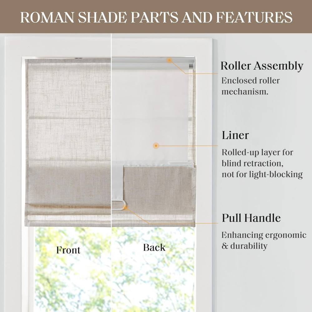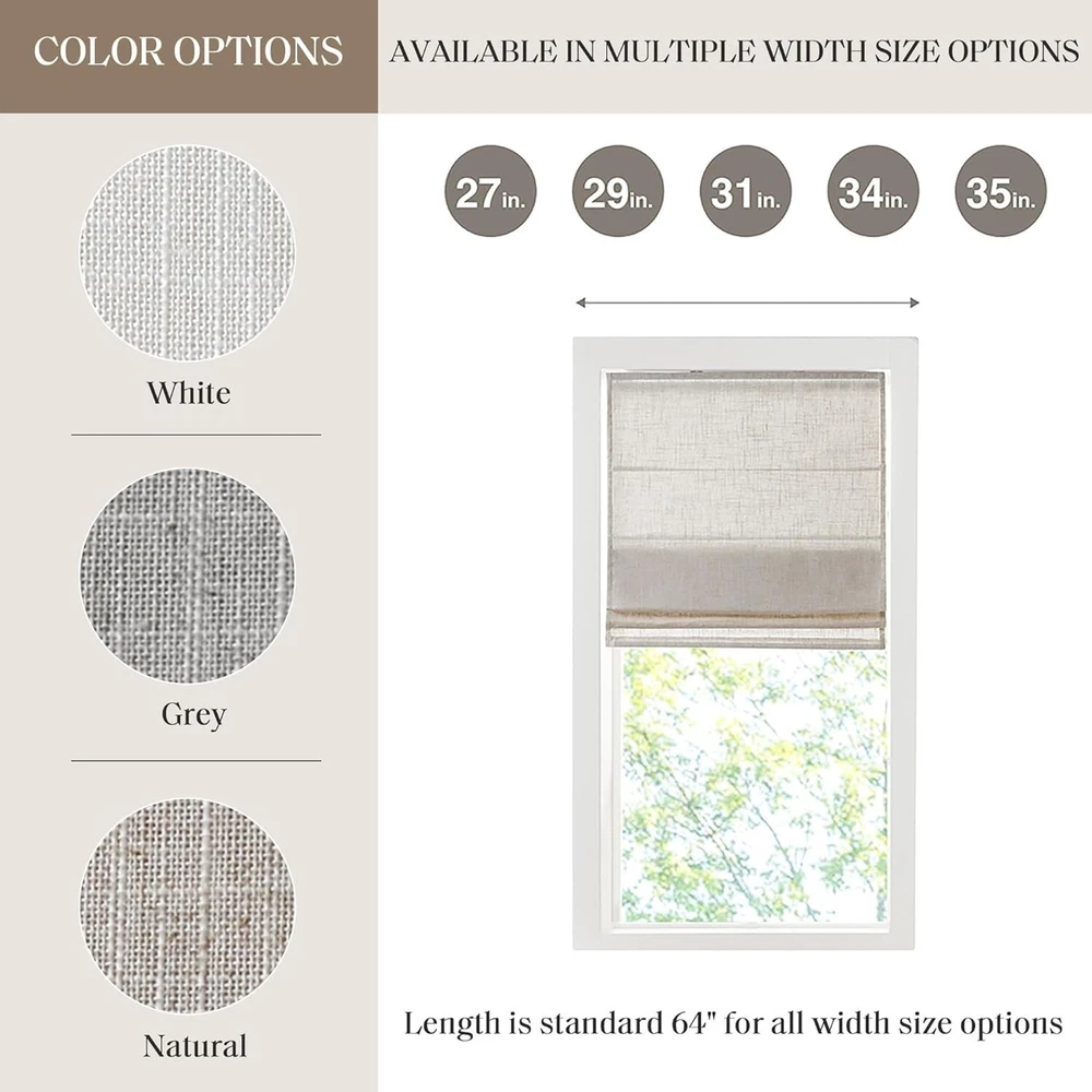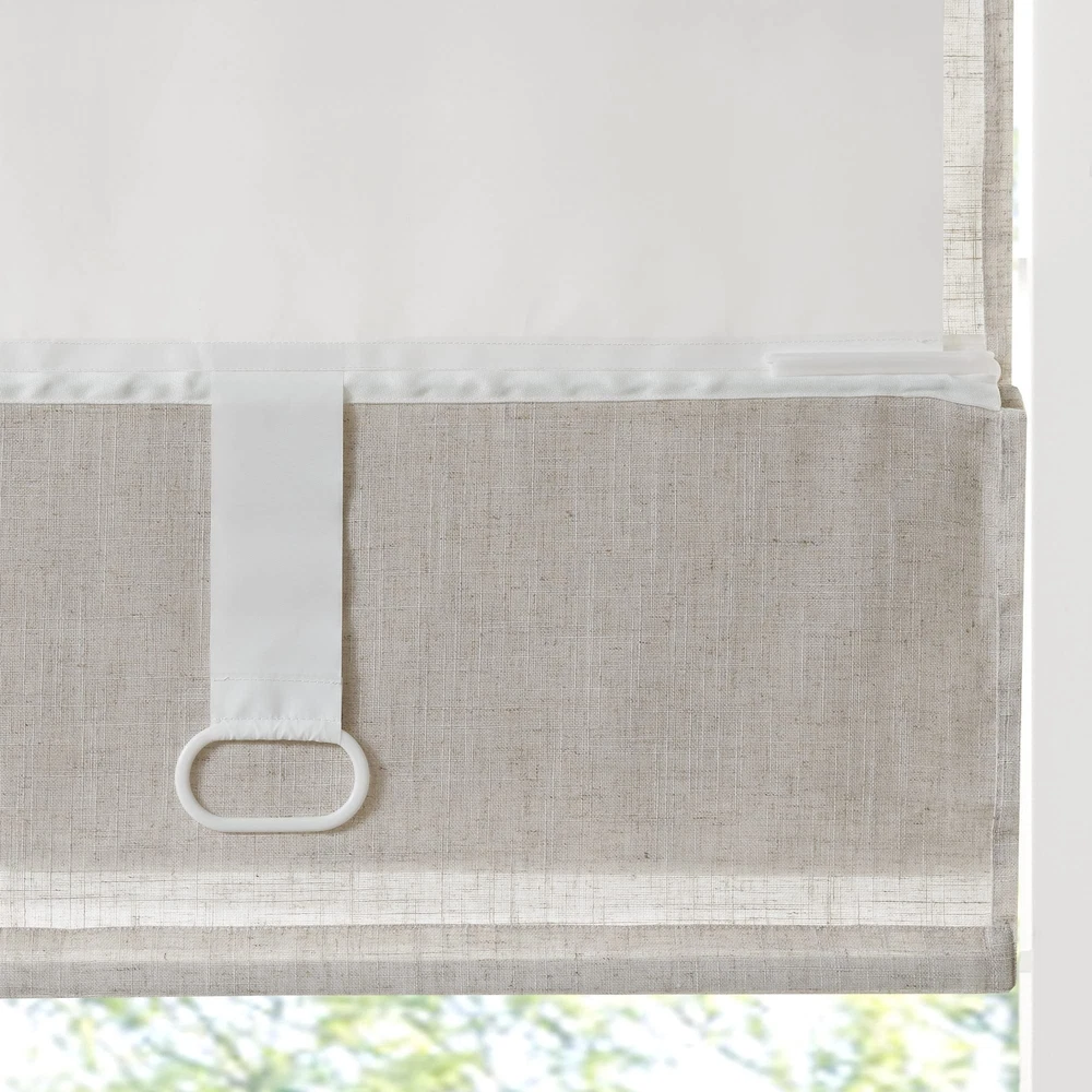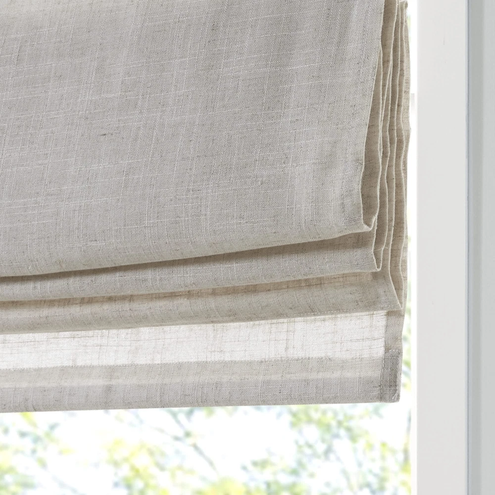 Madison Park Kyler Cordless Roman Shades - Single Panel, Lightweight Linen Blend Fabric, Natural Design, Easy Installation, Light Filtering Window Blind, Bedroom, Living Room Decor 29"W x 64"L Natural Product Details Color: Linen Blend Natural Size: 29"W x 64"H Style: Light Filtering - Linen Blend Brand: Madison Park MPN: MP40-7979 UPC: 022164191172 EAN: 0022164191172 Material: Polyester, Linen Product Dimensions: 64"L x 29"W Brand: Madison Park Color: Linen Blend Natural Opacity: Light Filtering Product Care Instructions: Spot Clean Material Type: Polyester, Linen Number Of Panels: 1 Size: 29"W x 64"H Number of Items: 1 Item Dimensions L x W: 64"L x 29"W Mounting Type: Inside Mount Water Resistance Level: Not Water Resistant Additional Features: Cordless Closure Type: Cordless Opacity: Light Filtering Operation Mode: Manual Item Shape: Rectangular Pattern: Solid Color: Linen Blend Natural UPC: 022164191172 Manufacturer: E&E Co. Ltd DBA JLA Home Room Type: Office, Kitchen, Bedroom, Living Room, Dining Room Built-In Media: 1 Roman Shade Model Number: MP40-7979 Brand: Madison Park Recommended Uses For Product: Indoor Specific Uses For Product: Window 85% Polyester, 15% Linen This roman shade features a beautifully textured linen blend fabric in a soft white tone creating a natural look and feel, while the lightweight fabric lets the right amount of light into your home for a bright, yet soft and airy touch Casual and stylish, the Madison Park Kyler Linen Blend Light Filtering Roman Shade is an easy addition to freshen up any space. Ideal for your smaller window size, such as kitchen window blind The cordless retraction mechanism allows for effortless operation, while the weighted hem ensures it stays perfectly in place. Pair it with the Kylar 2-panel window curtain (sold Separately) for enhanced styling, better coverage, and improved privacy It is Oeko-Tex Certified to includes no harmful substances or chemicals for better quality and wellness Only 1 Roman Shade is included. Size: 29"W x 64"L. Slat Depth - Front to back: 1.5", Mounting Depth: 3", Head Rail: 29"W x 1.5"D x 2.5"H (True to size). Assembly required, hardwares included Casual and stylish, the Madison Park Kyler Linen Blend Light Filtering Roman Shade is an easy addition to freshen up any space. This roman shade features a beautifully textured linen blend fabric in a soft natural tone creating a natural look and feel, while the lightweight fabric lets the right amount of light into your home for a bright, yet soft and airy touch. The cordless retraction mechanism makes it easy to open and close the window shade throughout the day, while the detachable fabric face allows for easier assembly and cleaning by lightly shaking or dusting. Though detachable from the hook and loop fastener, the top face fabric is NOT fully removable. Ready to install right out of the packaging, this roman shade can be hung inside or above the window pane allowing you to find the perfect fit for your home decor. Each shade is also OEKO-TEX certified, meaning it does not contain any harmful substances or chemicals to ensure quality comfort and wellness. Shade measures 64-inches in length and comes in 5 width options to suit multiple standard window sizes; each roman shade is sold as a single and comes with a printed instructional guide as well as an instructional video available on site. Assembly is required. Complete the look with coordinating window panel pairs, available and sold separately.