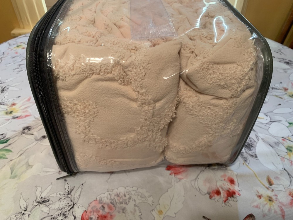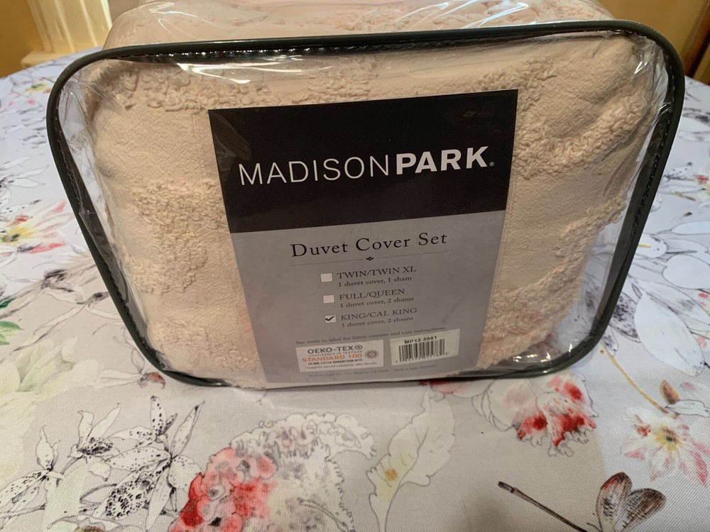 Madison Park Laetitia King/Cal King 3-Piece Tufted Cotton Chenille Medallion Duvet Cover - Model # MP12 -5981 100% cotton duvet cover and matching shams that provide comfort and style 4 inside ties to secure the insert to stay in place Set includes 1 duvet cover, 2 matching shams Machine washable for easy care Material/Fabrication: 100% cotton Style: Global Inspired/Shabby Chic|Modern/Contemporary Primary Color: Blush 1 Duvet Cover:104"W x 92"L 2 King Shams:20"W x 36"L (2)