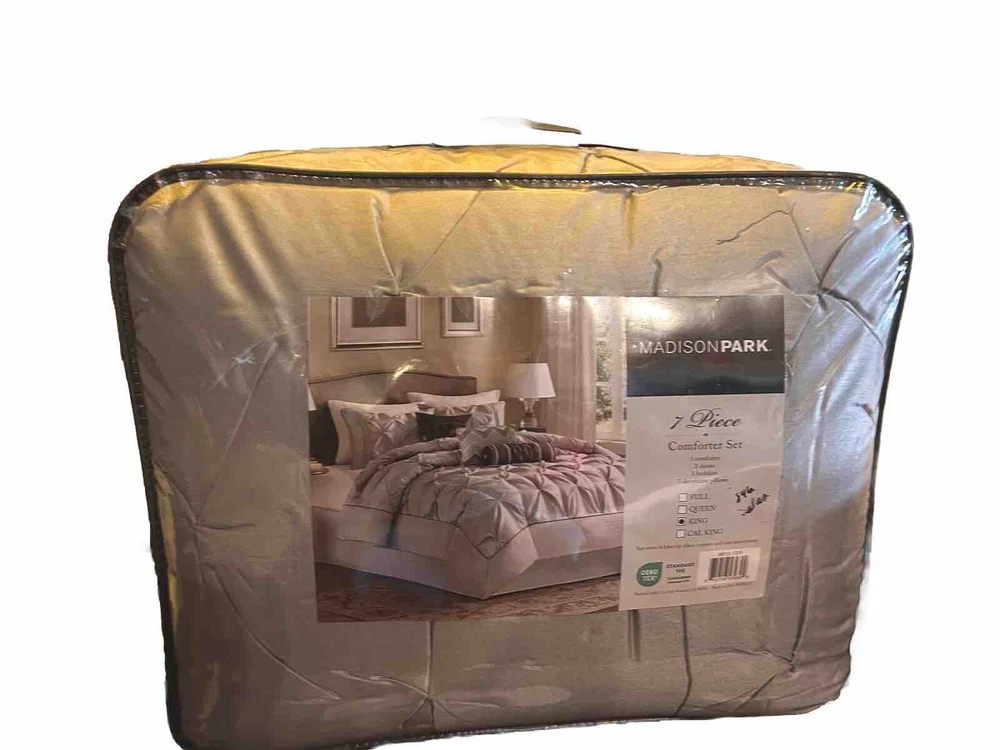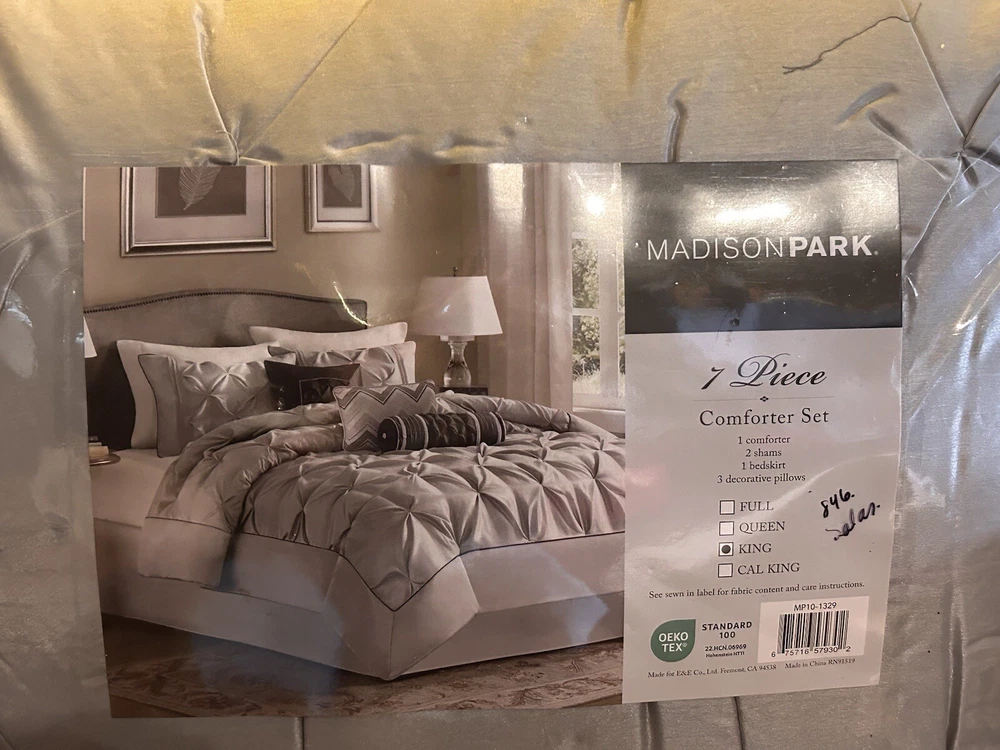 Madison Park Laurel 7 Piece Embroidery Tufted Comforter Grey King Size. Condition is New with tags. Shipped with USPS Ground Advantage.