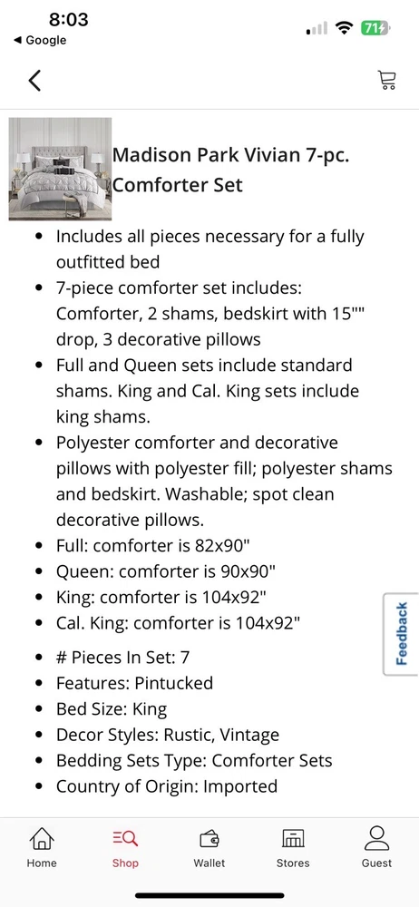 | Set Includes | Bed Skirt, Comforter, Decorative Pillow, Shams |