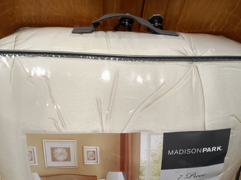 * Item Condition - Brand New (In original package) * Retail - $220 The Wilma comforter set from Madison Park features the comfort of polyester polyoni with a classic pleated design, making it a distinguished addition to any room. Product Features Set includes: comforter (104" x 92"), bed skirt (72" x 84" + 15"), two king shams (20" x 36") and three decorative pillows (18" x 18", 12" x 18", 6.5" x 18") Pleated design Comforter: polyester; polyester fill Sham: polyester Bedskirt: polyester Pillow: polyester cover; polyester fill Asian American & Pacific Islander Owned, Woman Owned Body: polyester; Machine washable Imported * My work environment is immaculately clean. There are no pets in my work area nor anything that can damage the item you purchased. I will never ship anything damaged, dirty or with foreign smells without mentioning it in that particular listing with a discount. The bed shown in some photo's is used as a model only. It's always precleaned. *** Return Policy My simple return policy. There will be no questions asked if you choose to return any item you purchase within 30 days. Items must be returned in the same condition you received it to be eligible for a full refund. The buyer pays for return shipping with a 15% restocking fee. Thank you *** SHIPPING I will always ship out within one business day and sometimes the same day if I have enough time. Expect one business day and also expect Friday purchases to go out Monday. Sometimes I might switch shipping at the last minute between USPS and Fedex or visa versa. * Feedback - If you feel the transaction went well then I would appreciate a positive feedback. You can expect the same from me. Thank you
