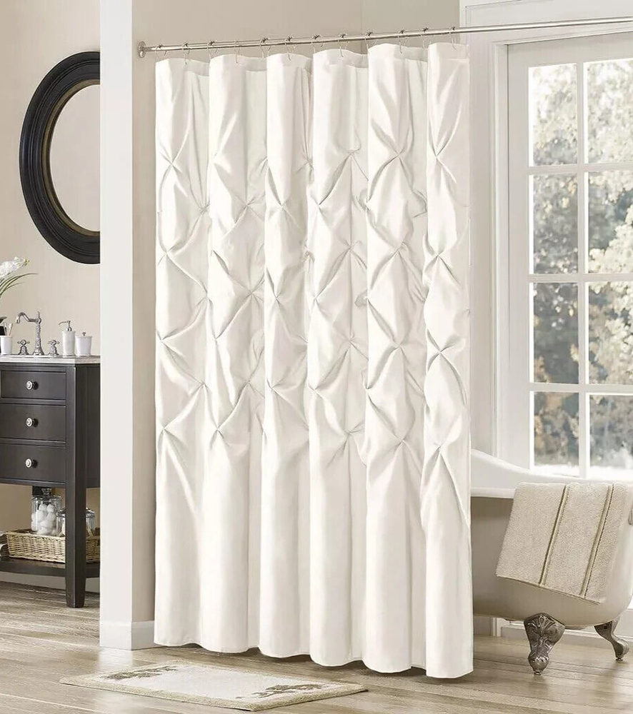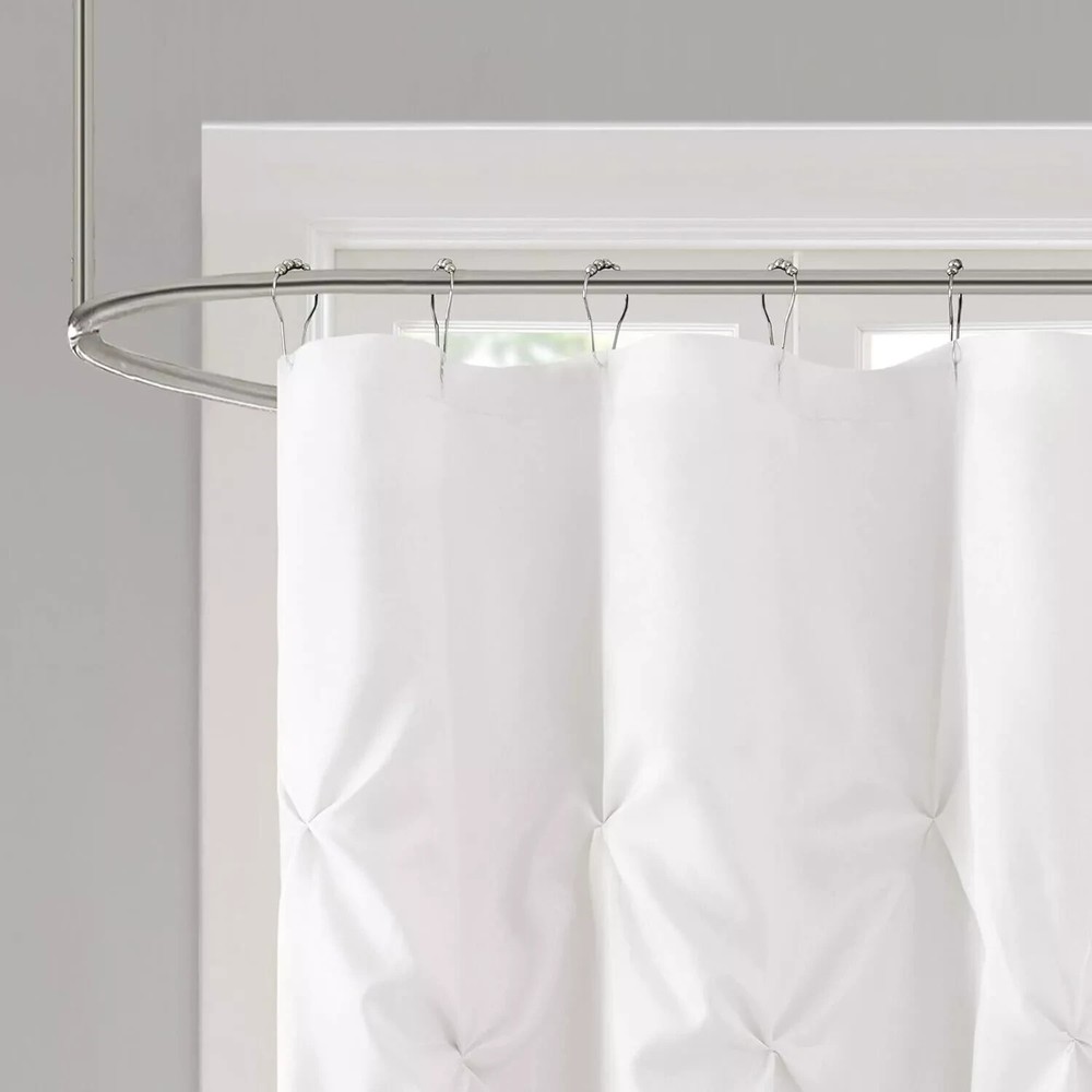 Madison Park Laurel Shower Curtain Elevate your bathroom with the Madison Park Laurel Shower Curtain, a blend of practicality and elegance. The pure white color of this 72" x 72" curtain offers a clean and timeless look that complements any decor. Made from durable polyester, it's designed to withstand the humid conditions of your shower or bathtub while providing a stylish separation 72" x 72" Shower curtain does not include hooks 100% polyester polyoni Machine Washable Imported
