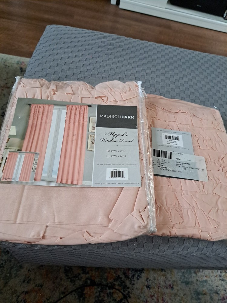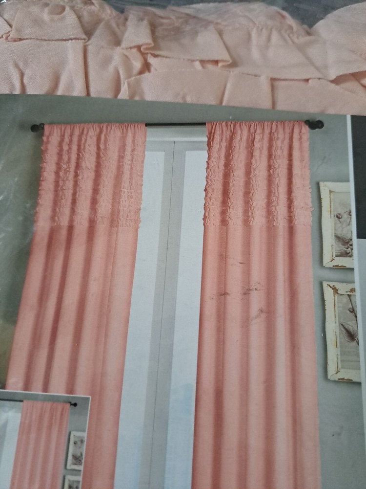 Madison Park Laurie Horizontal Ruffle Curtain Panel Pink 50 x 63 Flippable New. 2 panels...