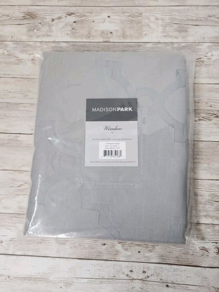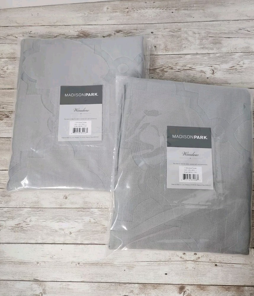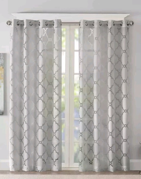 Madison Park Laya 50" x 95" Fretwork Burnout Sheer Grommet Window Curtains Gray Set of 2 Brand New - Modern & Contemporary - Grommet- Silver Finish - Sheer - Lightweight - 62% Rayon 38% Polyester - Machine washable