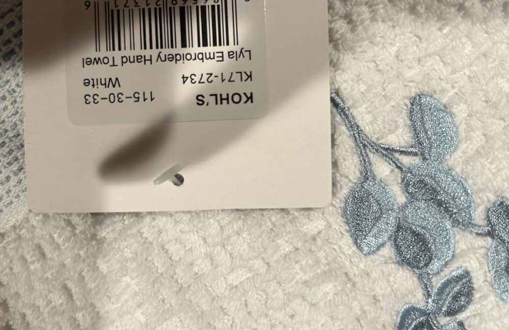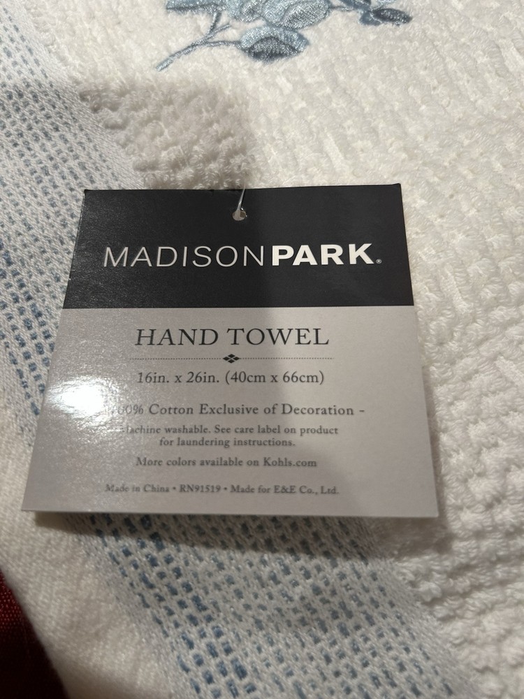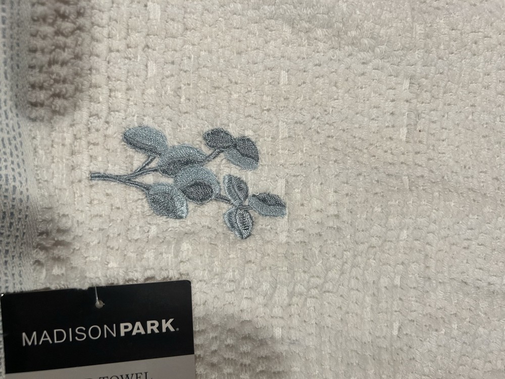Madison Park Layla Embroidary Hand Towel White with blue...