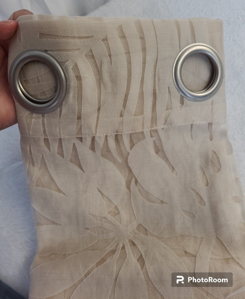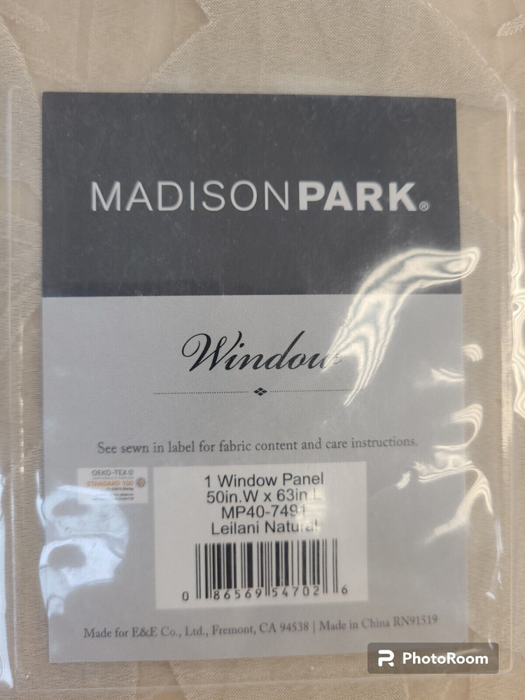 Brand New, Madison Park Leilani Natural Palm Leaf Burnout Window Panel Sheer 50 in. X 63 in. Sold as 1 single panel. Purchasing 2 is recommended. Add a touch of nature to your room with the Madison Park Leilani Natural Palm Leaf Burnout Window Panel Sheer. This lightweight panel has a sheer and transparent effect, perfect for filtering in natural light while maintaining privacy. The panel features a modern botanical pattern of palm leaves, adding a tropical vibe to any room. Brand: Madison Park Size: 50 in W X 63 in L One Panel Color: Leilani Natural (Beige) Materials: 57% Rayon & 43% Polyester Care: Hand Washable Color: True color may vary from screen to screen and light to light. New Shelf pulls might have signs of being handled or tried on at store but are not any damage. All Pictures are part of the item description. Please Zoom in or Enlarge Photos to get a closer look. If you have any questions about a listing or concerns regarding a purchase, please do not hesitate to contact us through eBay's messaging system and we will be happy to assist you. Thank you for your purchase.