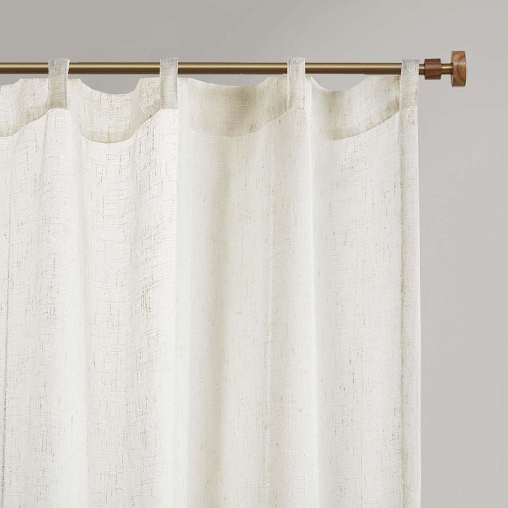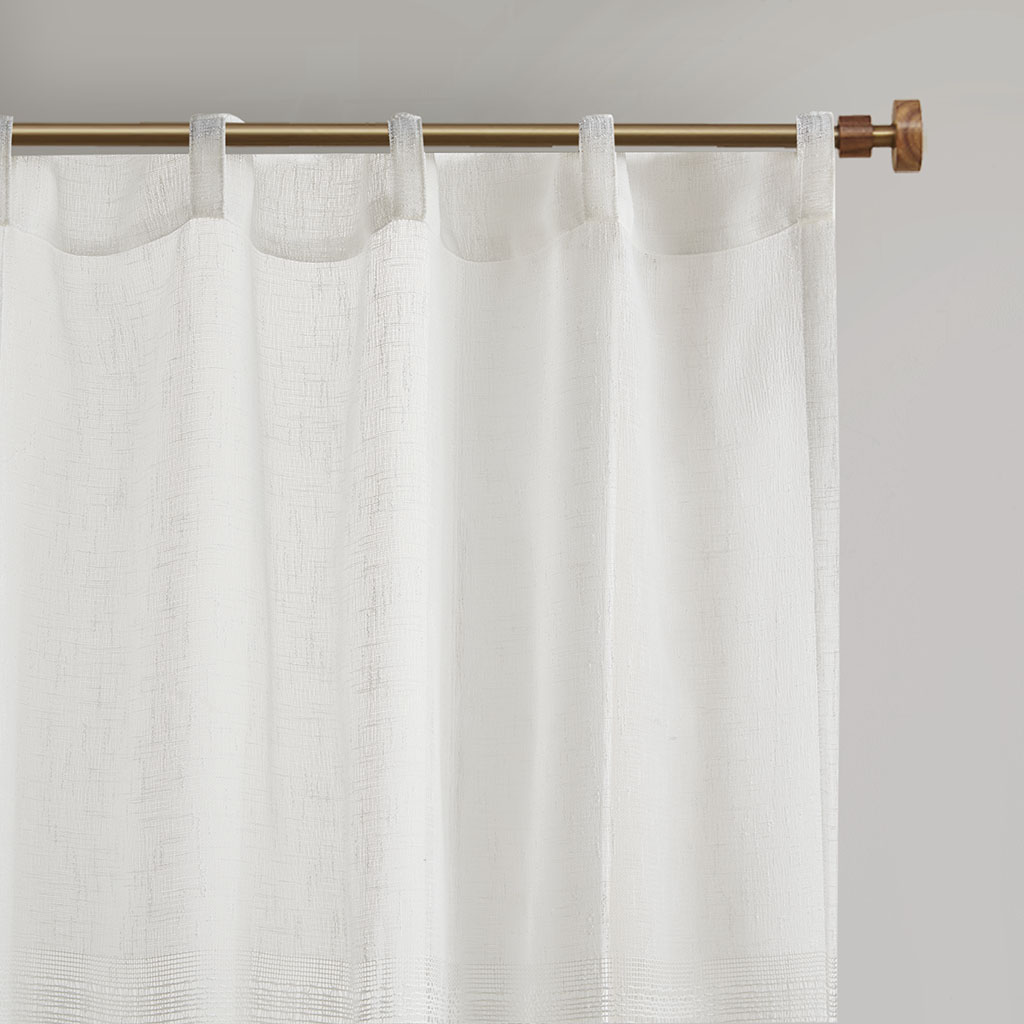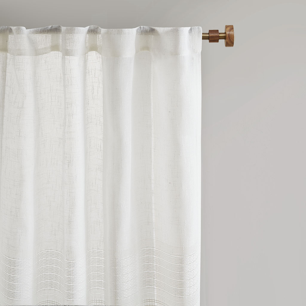 Madison Park Aida Yarn Dye Sheer Curtain Panel Pair 2-PK 37x84 2-PK 37x95 DESCRIPTION Create a soft and graceful allure in your home with the Madison Park Aida Yarn Dye Sheer Window Panel Pair. This sheer panel pair features a beautiful woven linen texture to create an airy look that drapes softly from your window; while handcrafted detailing creates a beautiful tonal color block pattern, giving each sheer panel a stylish and Boho-inspired touch. A rod pocket top finish makes these panels easy to hang, or hang on back tabs for a more tailored look; each top finish fits up to a 1.25" diameter rod. Machine washable for easy care; this sheer window panel pair is also OEKO-TEX certified, meaning it does not contain any harmful substances or chemicals to ensure quality comfort and wellness. FEATURES • Beautiful Linen texture woven window sheer pair • Lightweight and soft drape handcrafted detailing window pair in soft neutral hues • Set of 2, each panel measures 37" wide • Oeko-Tex Certified, includes no harmful substances or chemicals • Rod pocket/back tab top finish fits up to 1.25" diameter rod • Machine washable for easy care • Panel pair value set ready to hang MATERIAL DETAILS 100% Polyester CARE INSTRUCTIONS Machine washable in mesh laudry bag, spot clean is recommended Available Sizes (In Inches): 84" Panel Size: Includes 2 Window Panels measuring 37"W x 84"L (2). 95" Panel Size: Includes 2 Window Panels measuring 37"W x 95"L (2).