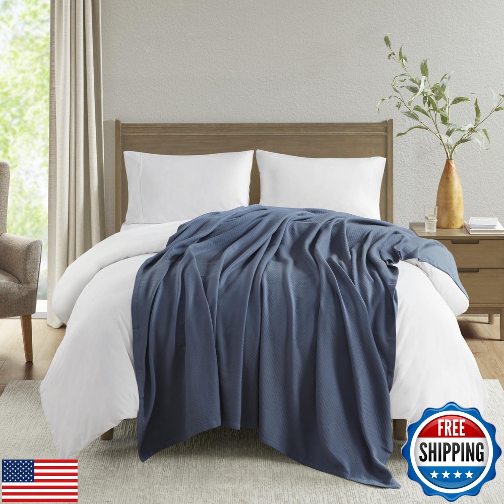 Madison Park Liquid Cotton Blanket Breathable, Softer Ring Spun Weave, Diamond Motif, Luxurious 100% Cotton All Seasons Lightweight Summer Blanket for Bed, Couch, Office, Navy, Full/Queen Features Luxuriously Cozy - A cozy cotton comfort that comes in vibrant color; our blanket is a premium 100% cotton that's particularly ring spun and woven into a stylish diamond pattern. Oeko-Tex certified ensuring high-quality and responsible craftsmanship Ring Spun Weave - Enhanced softness and durability ring spun cotton liquid cotton blanket is your perfect sleeping companion. This lightweight and naturally cool blanket ensure a cozy night's sleep year-round Durable - Our liquid cotton blanket boasts superior durability, virtually eliminating pilling and shrinkage, ensuring years of comfort. Perfect for cozy snuggles on your couch or for added warmth and comfort in the office Size - (1 ) Full/Queen Size Blanket: 90"W x 90"L Easy Care - For you convenient it's machine wash cold, gently and separately. Do not bleach. Tumble dry low. Remove promptly Shipping Free & Fast Shipping: We offer free shipping to most of the USA with a normal delivery time of 3-7 days. However, due to the current situation, additional delivery time (up to 3 weeks) may be required for some items. Alternative Carriers: We may use alternative carriers (e.g., USPS, FedEx, UPS) to ensure your package arrives safely and on time. Due to the use of multiple carriers, we are unable to provide a tracking number automatically. Handling Time: Orders are processed and shipped within 1-2 business days of receiving cleared payment. Shipping Restrictions: Shipping to Alaska, Hawaii, Puerto Rico, Guam, and other US territories may incur shipping charges or delivery restrictions. Please contact us before ordering, or your order can be refunded/cancelled. State Restrictions: Certain items may not be shipped to California due to state regulations. Contact for Tracking Updates: If you require tracking updates or have any concerns about the delivery of your order, please feel free to contact us, and we will be happy to assist you. Return Policy 30-Day Hassle-Free Returns: If you are not completely satisfied with your purchase, you can return the item for free within 30 days of receiving it for a full refund or exchange. Easy Return Process: Contact us, and we will provide you with a prepaid return shipping label and detailed instructions. No Restocking Fee: There are no restocking fees for returns. However, the buyer is responsible for return shipping costs if the return is not due to a seller's error. Refund Processing: Refunds will be processed within 1 business day of receiving the returned item in its original condition. Payment We accept all major credit cards, PayPal, and Apple Pay for your convenience. Your payment information is secure and encrypted to ensure a safe and seamless transaction. Please complete your payment within 3 days of purchase to avoid any delays in shipping. Feedback Your feedback is extremely important to us. We strive to provide the best products and customer service possible. If you are satisfied with your purchase, please take a moment to leave us a positive review. If you have any concerns or issues with your order, please contact us before leaving negative feedback. We are committed to resolving any problems and ensuring your satisfaction. Contact Us If you have any questions or concerns, please feel free to reach out to our customer support team. You can contact us through the eBay messaging system. We are available Monday to Friday, 9:00 am to 5:00 pm EST, and we will do our best to respond to your inquiry within 24 hours. Thank you for supporting our small family business!