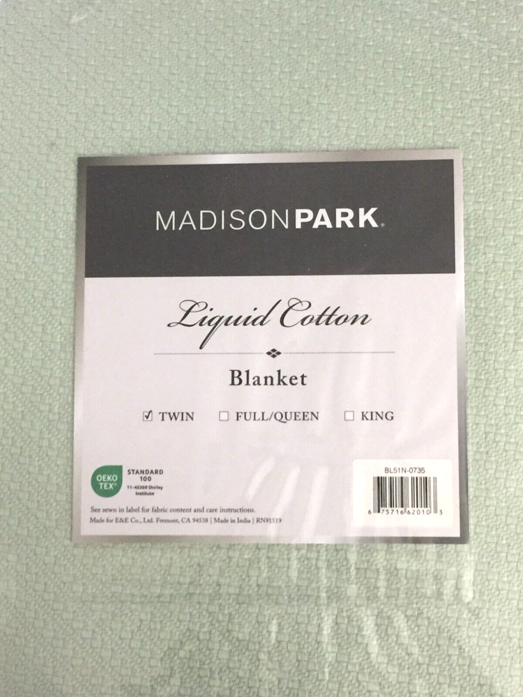 Madison Park Liquid Cotton Blanket, Twin, Seafoam Madison Park Soft Certified 100% Egyptian Cotton Breathable Cozy Blanket, Premium Waffle Knit Classic Design, Luxury All Season Lightweight Cover for Bed, Couch and Sofa, Seafoam Twin(66"x90") Size: Twin Color: seafoam Age Group: adult Gender: unisex Material: 100% cotton New With Tag Gender: Unisex 100% Satisfaction Guarantee. If for any reason you not satisfied with our product, you may return any un-opened merchandise (except Skincare, and Makeup items due to health reasons ) in its original condition, including original packaging and packing slip within 7 days of receipt and you will receive a refund less shipping charges. 15% restocking fee will apply. Shipping cost is non-refundable for undelivered, unclaimed or returned packages, unless we made an error. *********************************************** Payment must be received within seven (7) days of auction close. Unpaid auction wins will be forfeited after seven (7) days and a Non-Payer report will be filed with eBay to recover the closing fees of the auction. If you wish to combine multiple auctions for shipping, please make sure the closing dates from the first auction to the last auction are within seven (7) days Sellers are not responsible for service transit time. Transit times are provided by the carrier, exclude weekends and holidays, and may vary with package origin and destination, particularly during peak periods. ******************************************************************************************* PLEASE CONTACT ME FIRST IF YOU ARE NOT SATISFIED WITH YOUR PURCHASE. I WILL BE HAPPY TO SOLVE ANY PROBLEM. CUSTOMER SATISFACTION IS MY NUMBER ONE PRIORITY. ************************************** PLEASE GIVE US THE OPPORTUNITY TO SERVE YOU !!!
