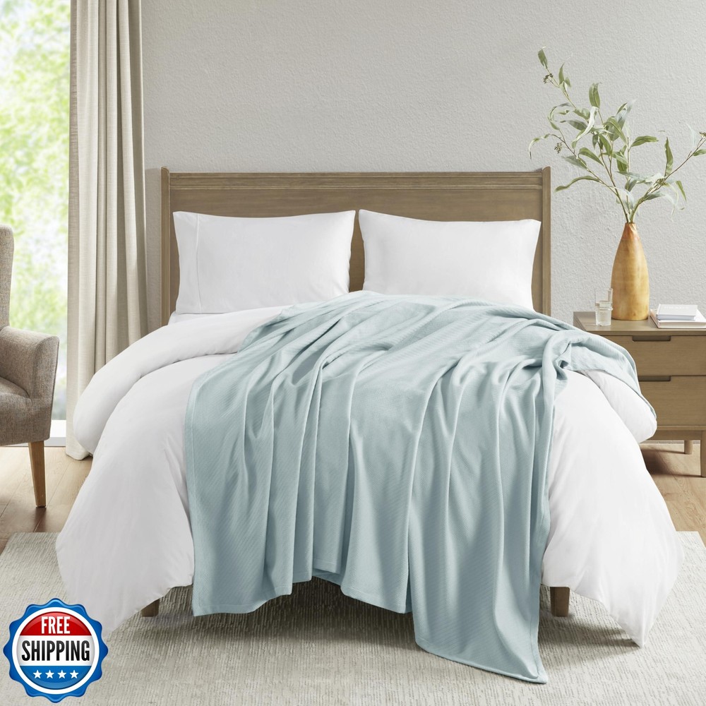 Madison Park Liquid Cotton Luxury Blanket Premium Soft Cozy 100% Ring Spun Cotton For Bed , Couch or Sofa, Full/Queen, Light Blue Features A classic cotton comfort that comes in vibrant color; our liquid cotton blanket is a premium 100% cotton blanket that's particularly ring spun and woven into a smooth patterned blanket. This is a perfect summer blanket featuring exceptionally soft premium cotton that naturally wicks away moisture, and breathable giving you year round comfort. Our liquid cotton virtually eliminates shrinkage and pilling, giving you a lasting confidence in quality and durability in the years to come. 1 Full/Queen Size Blanket: 90"W x 90"L For you convenicend it's machine wash cold, gently and separately. Do not bleach. Tumble dry low. Remove promptly. Shipping Free & Fast Shipping: We offer free shipping to most of the USA with a normal delivery time of 3-7 days. However, due to the current situation, additional delivery time (up to 3 weeks) may be required for some items. Alternative Carriers: We may use alternative carriers (e.g., USPS, FedEx, UPS) to ensure your package arrives safely and on time. Due to the use of multiple carriers, we are unable to provide a tracking number automatically. Handling Time: Orders are processed and shipped within 1-2 business days of receiving cleared payment. Shipping Restrictions: Shipping to Alaska, Hawaii, Puerto Rico, Guam, and other US territories may incur shipping charges or delivery restrictions. Please contact us before ordering, or your order can be refunded/cancelled. State Restrictions: Certain items may not be shipped to California due to state regulations. Contact for Tracking Updates: If you require tracking updates or have any concerns about the delivery of your order, please feel free to contact us, and we will be happy to assist you. Return Policy 30-Day Hassle-Free Returns: If you are not completely satisfied with your purchase, you can return the item for free within 30 days of receiving it for a full refund or exchange. Easy Return Process: Contact us, and we will provide you with a prepaid return shipping label and detailed instructions. No Restocking Fee: There are no restocking fees for returns. However, the buyer is responsible for return shipping costs if the return is not due to a seller"s error. Refund Processing: Refunds will be processed within 1 business day of receiving the returned item in its original condition. Feedback Your feedback is extremely important to us. We strive to provide the best products and customer service possible. If you are satisfied with your purchase, please take a moment to leave us a positive review. If you have any concerns or issues with your order, please contact us before leaving negative feedback. We are committed to resolving any problems and ensuring your satisfaction. Contact Us If you have any questions or concerns, please feel free to reach out to our customer support team. You can contact us through the eBay messaging system. We are available Monday to Friday, 9:00 am to 5:00 pm EST, and we will do our best to respond to your inquiry within 24 hours. Thank you for supporting our small family business!