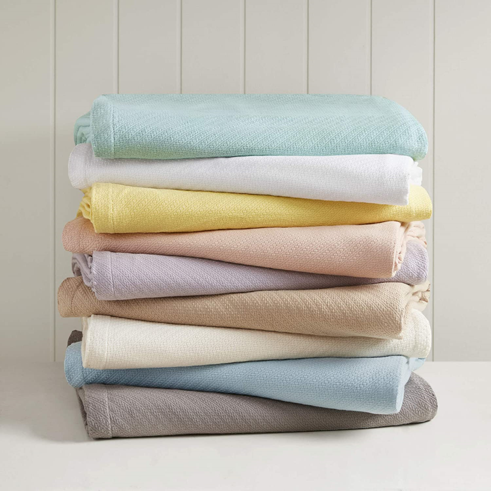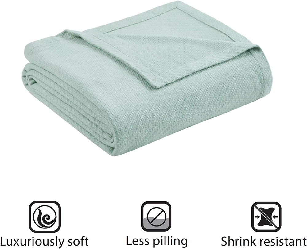 Madison Park Liquid Cotton Luxury Blanket Premium Soft Cozy 100% Ring Spun Co... 100% Cotton Imported A classic cotton comfort that comes in vibrant color; our liquid cotton blanket is a premium 100% cotton blanket that's particularly ring spun and woven into a smooth patterned blanket. This is a perfect summer blanket featuring exceptionally soft premium cotton that naturally wicks away moisture, and breathable giving you year round comfort. Our liquid cotton virtually eliminates shrinkage and pilling, giving you a lasting confidence in quality and durability in the years to come. For you convenicend it's machine wash cold, gently and separately. Do not bleach. Tumble dry low. Remove promptly.