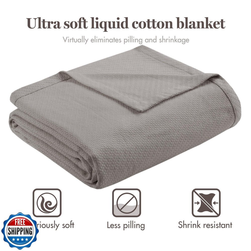 Madison Park Liquid Cotton Luxury Blanket Premium Soft Cozy 100% Ring Spun Cotton For Bed , Couch or Sofa, Full/Queen, Gray Features A classic cotton comfort that comes in vibrant color; our liquid cotton blanket is a premium 100% cotton blanket that's particularly ring spun and woven into a smooth patterned blanket. This is a perfect summer blanket featuring exceptionally soft premium cotton that naturally wicks away moisture, and breathable giving you year round comfort. Our liquid cotton virtually eliminates shrinkage and pilling, giving you a lasting confidence in quality and durability in the years to come. 1 Full/Queen Size Blanket: 90"W x 90"L For you convenicend it's machine wash cold, gently and separately. Do not bleach. Tumble dry low. Remove promptly. Shipping Free & Fast Shipping: We offer free shipping to most of the USA with a normal delivery time of 3-7 days. However, due to the current situation, additional delivery time (up to 3 weeks) may be required for some items. Alternative Carriers: We may use alternative carriers (e.g., USPS, FedEx, UPS) to ensure your package arrives safely and on time. Due to the use of multiple carriers, we are unable to provide a tracking number automatically. Handling Time: Orders are processed and shipped within 1-2 business days of receiving cleared payment. Shipping Restrictions: Shipping to Alaska, Hawaii, Puerto Rico, Guam, and other US territories may incur shipping charges or delivery restrictions. Please contact us before ordering, or your order can be refunded/cancelled. State Restrictions: Certain items may not be shipped to California due to state regulations. Contact for Tracking Updates: If you require tracking updates or have any concerns about the delivery of your order, please feel free to contact us, and we will be happy to assist you. Return Policy 30-Day Hassle-Free Returns: If you are not completely satisfied with your purchase, you can return the item for free within 30 days of receiving it for a full refund or exchange. Easy Return Process: Contact us, and we will provide you with a prepaid return shipping label and detailed instructions. No Restocking Fee: There are no restocking fees for returns. However, the buyer is responsible for return shipping costs if the return is not due to a seller"s error. Refund Processing: Refunds will be processed within 1 business day of receiving the returned item in its original condition. Feedback Your feedback is extremely important to us. We strive to provide the best products and customer service possible. If you are satisfied with your purchase, please take a moment to leave us a positive review. If you have any concerns or issues with your order, please contact us before leaving negative feedback. We are committed to resolving any problems and ensuring your satisfaction. Contact Us If you have any questions or concerns, please feel free to reach out to our customer support team. You can contact us through the eBay messaging system. We are available Monday to Friday, 9:00 am to 5:00 pm EST, and we will do our best to respond to your inquiry within 24 hours. Thank you for supporting our small family business!