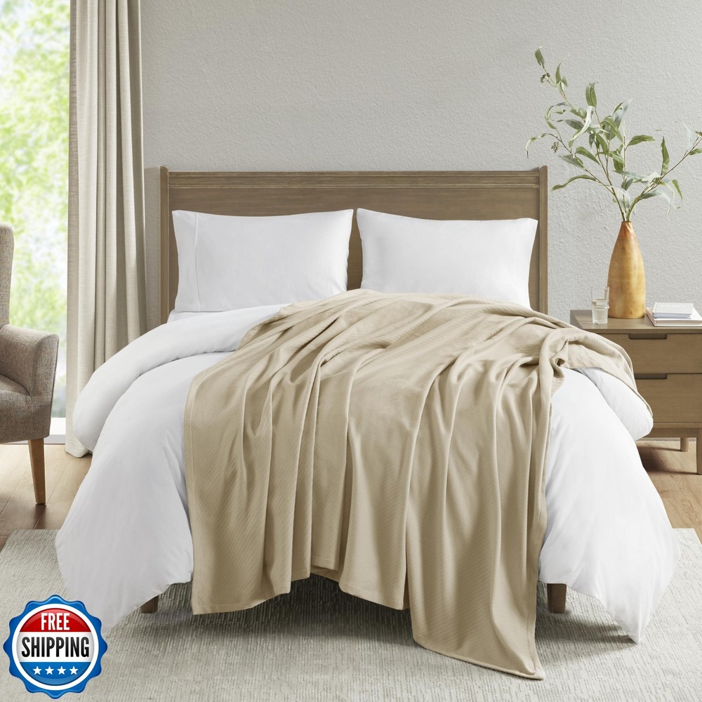 Madison Park Liquid Cotton Luxury Blanket Premium Soft Cozy 100% Ring Spun Cotton For Bed , Couch or Sofa, Full/Queen, Linen Features A classic cotton comfort that comes in vibrant color; our liquid cotton blanket is a premium 100% cotton blanket that's particularly ring spun and woven into a smooth patterned blanket. This is a perfect summer blanket featuring exceptionally soft premium cotton that naturally wicks away moisture, and breathable giving you year round comfort. Our liquid cotton virtually eliminates shrinkage and pilling, giving you a lasting confidence in quality and durability in the years to come. 1 Full/Queen Size Blanket: 90"W x 90"L For you convenicend it's machine wash cold, gently and separately. Do not bleach. Tumble dry low. Remove promptly. Shipping Free & Fast Shipping: We offer free shipping to most of the USA with a normal delivery time of 3-7 days. However, due to the current situation, additional delivery time (up to 3 weeks) may be required for some items. Alternative Carriers: We may use alternative carriers (e.g., USPS, FedEx, UPS) to ensure your package arrives safely and on time. Due to the use of multiple carriers, we are unable to provide a tracking number automatically. Handling Time: Orders are processed and shipped within 1-2 business days of receiving cleared payment. Shipping Restrictions: Shipping to Alaska, Hawaii, Puerto Rico, Guam, and other US territories may incur shipping charges or delivery restrictions. Please contact us before ordering, or your order can be refunded/cancelled. State Restrictions: Certain items may not be shipped to California due to state regulations. Contact for Tracking Updates: If you require tracking updates or have any concerns about the delivery of your order, please feel free to contact us, and we will be happy to assist you. Return Policy 30-Day Hassle-Free Returns: If you are not completely satisfied with your purchase, you can return the item for free within 30 days of receiving it for a full refund or exchange. Easy Return Process: Contact us, and we will provide you with a prepaid return shipping label and detailed instructions. No Restocking Fee: There are no restocking fees for returns. However, the buyer is responsible for return shipping costs if the return is not due to a seller"s error. Refund Processing: Refunds will be processed within 1 business day of receiving the returned item in its original condition. Feedback Your feedback is extremely important to us. We strive to provide the best products and customer service possible. If you are satisfied with your purchase, please take a moment to leave us a positive review. If you have any concerns or issues with your order, please contact us before leaving negative feedback. We are committed to resolving any problems and ensuring your satisfaction. Contact Us If you have any questions or concerns, please feel free to reach out to our customer support team. You can contact us through the eBay messaging system. We are available Monday to Friday, 9:00 am to 5:00 pm EST, and we will do our best to respond to your inquiry within 24 hours. Thank you for supporting our small family business!