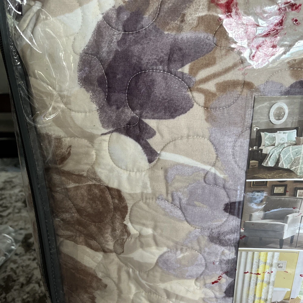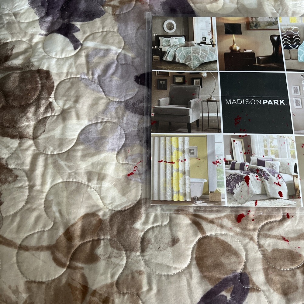 Madison Park Luna 6 PC Reversible Coverlet Set Full/Queen Purple Brown Stitched.