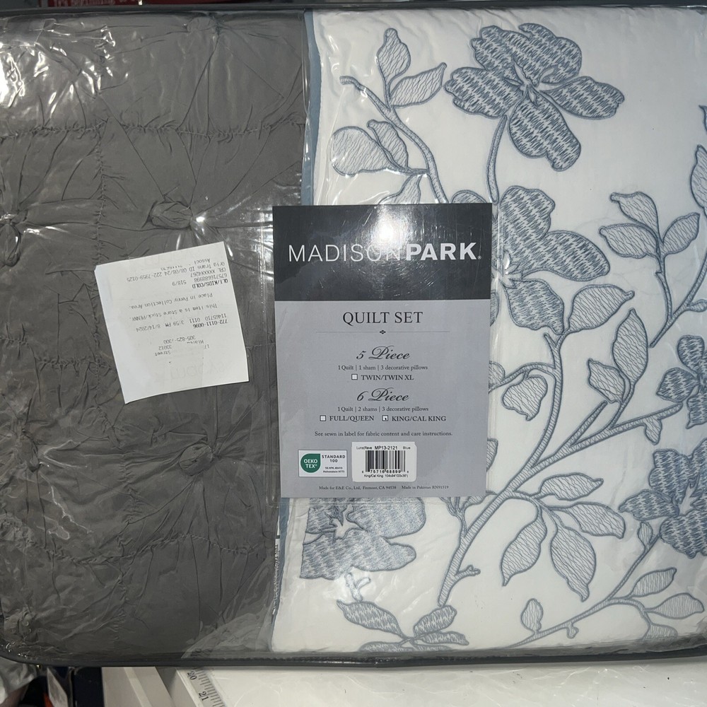 Add charm to your bedroom with the Luna quilt set from Madison Park, featuring quilted fabric and a beautiful floral design on the face of the reversible quilt. Set includes: quilt (104" x 94"), three decorative pillows (18" x 18", 16" x 16", 12" x 18") and two king shams (20" x 36") Polyester, cotton Machine washable. Spot clean pillows. Imported