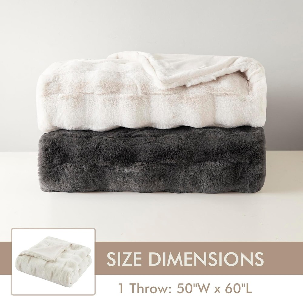 ***Item Description:*** S-269-B-022164294088 About this item Glam/Luxury Luxurious Faux Fur Basketweave Blanket - Immerse yourself in the sumptuous softness of long faux fur throw as you snuggle up in its cozy basketweave texture. Embrace a cozier lifestyle with our exquisite premium grade 810gsm velvet blanket Introducing our Reversible 2-in-1 Blanket - a revolutionary blend of cozy comfort and plush warmth. Combining the breathable, soft faux fur texture of a basketweave design with the irresistibly snug embrace of velvet softness for your ultimate comfort Experience the ultimate comfort with our all-season, skin-friendly faux fur. Whether you're snuggled up for a movie night or seeking comfort at office, our breathable basketweave & buttery soft velvet throw ensures you're pampered in warmth and luxury Set: 1 Throw: 50"W x 60"L. Compact and well-packaged, our blanket is the perfect gift idea for any occasion – birthdays, Valentine's Day, Mother's Day, or Christmas – celebrate yourself or that special someone with everlasting warmth and affection DURABLE & EASY CARE: Our faux fur throw blanket boasts quality stitching offers durability to withstand daily wear and tear. For easy care, simply machine wash separately in cold water on a gentle cycle and tumble dry on low heat