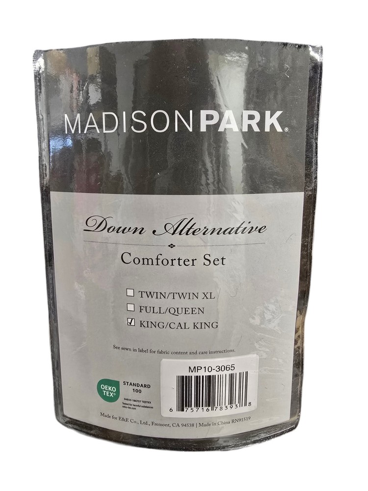 Elevate your bedroom decor with the Madison Park MP10-3065 York Black Solid King/Cal King Polyester Comforter Set. This sleek and modern three-piece set, featuring a king-size comforter and two shams, provides an elegant black color that complements any room aesthetic. Crafted from soft polyester, it ensures a cozy and comfortable night's sleep. The set's dimensions are designed to fit perfectly on a king or California king bed, with the comforter measuring 104 inches in width and 90 inches in length, and each sham at 20 inches in width and 36 inches in length plus a 2-inch drop. Carefully constructed for convenience, this set is machine washable, ensuring easy maintenance.
