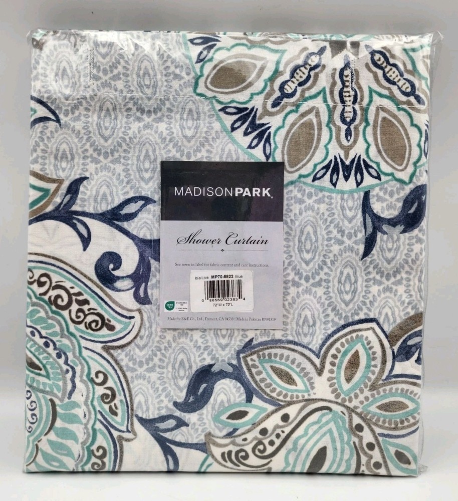 Madison Park Isla|Lole Cotton Printed Shower Curtain Model - MP70-5822 Size - 72×72 in Color - Blue Condition is New