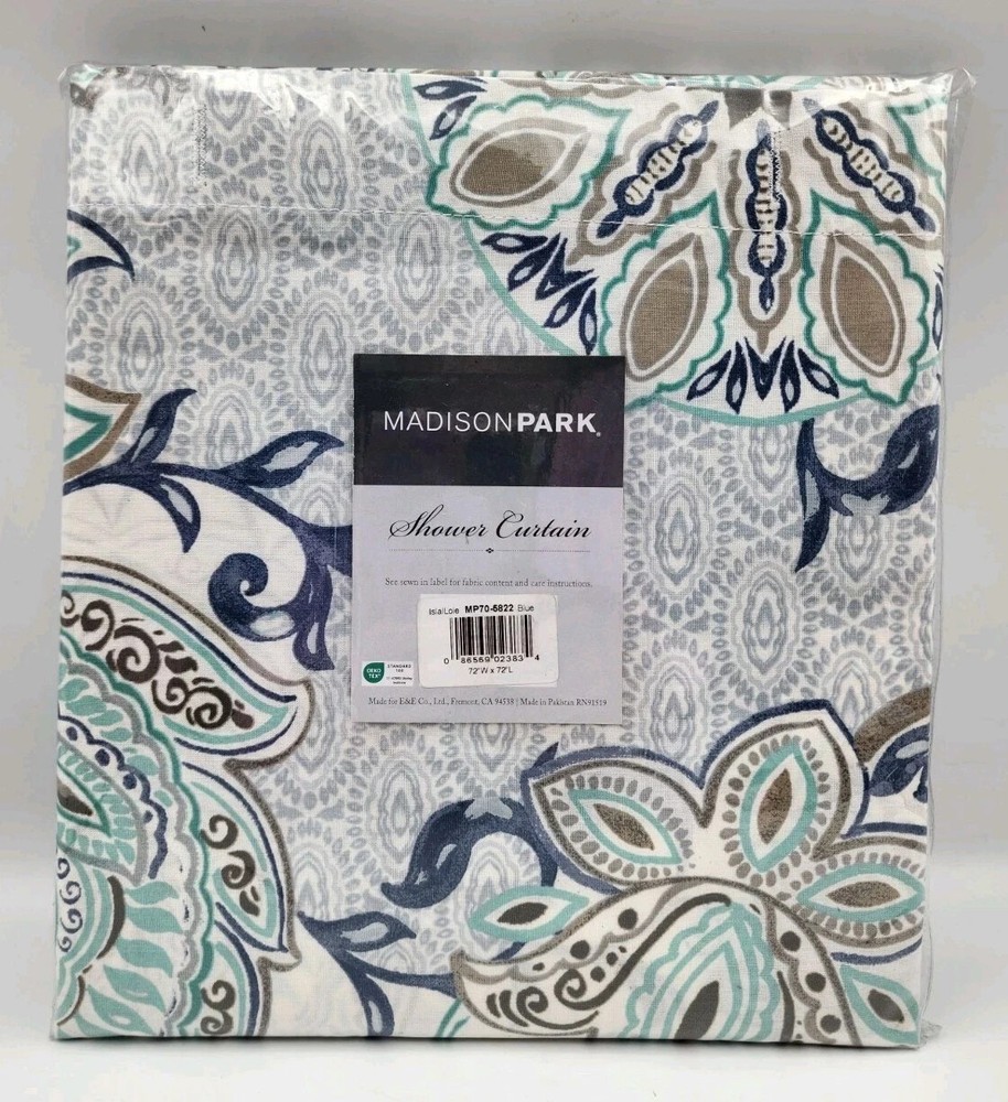 Madison Park MP70-5822 72×72 in Isla|Lole Blue Cotton Printed Shower Curtain New never used or tried out, I took it out of package to inspect it. then put it back in....