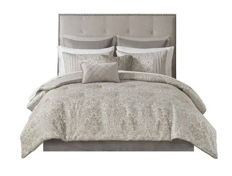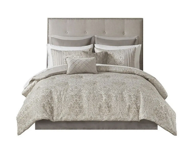 Emilia, 100% Polyester Jaquard 12pcs Comforter Set - Khaki. Comforter 2 shams Bedskirt 2 decorative pillows 2 euro shams Flat sheet Fitted sheet 2 pillowcases...