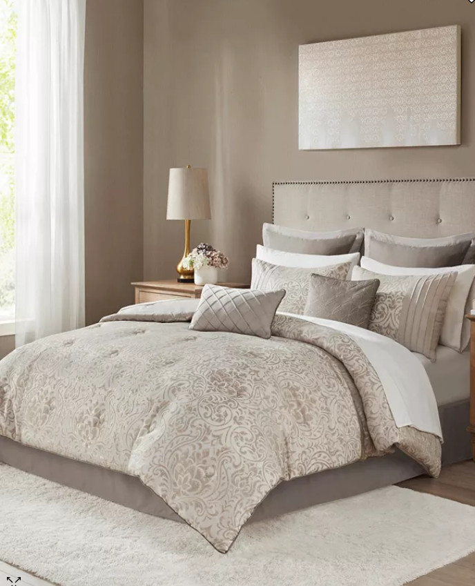 This comforter set is absolutely stunning—the jacquard fabric with metallic threads gives it a luxurious, elegant look. The khaki and gold combo adds warmth to my bedroom, while the included sheets are soft and comfortable. It’s surprisingly lightweight yet cozy, and the full 12-piece set makes styling effortless. The quality feels high-end, and everything arrived neatly packaged. Definitely worth the investment for a polished, hotel-like upgrade!