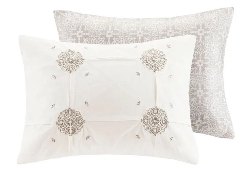 Add a touch of modern bohemian chic to your bedroom with the Madison Park Malia 4 Pc Medallion Cotton Reversible Duvet Set. This set includes a duvet cover, decorative pillow, and pillow sham, all made of 100% cotton in a rectangular shape and white color. The medallion pattern and reversible feature make it a versatile and stylish addition to any bedroom. Care instructions are easy with machine washable materials. Perfect for adults, teens, kids, and even unisex baby & toddler rooms, this duvet cover set is sure to impress. Buttons provide a secure closure type, and the set includes 4 pieces - the duvet cover, decorative pillow, pillow sham, and a reversible feature for added style.