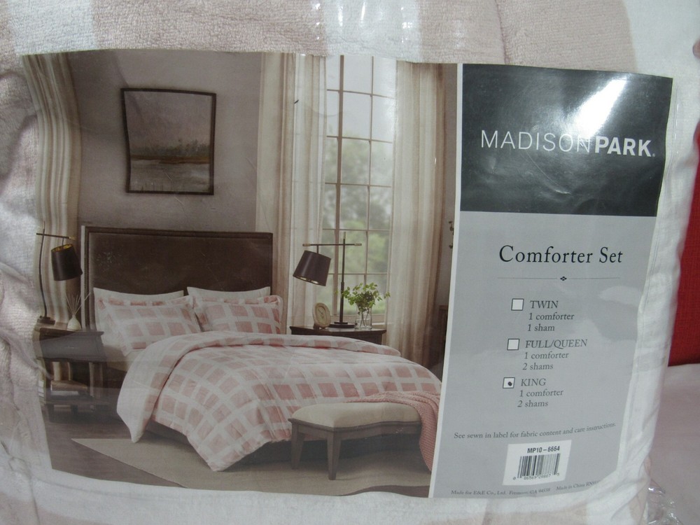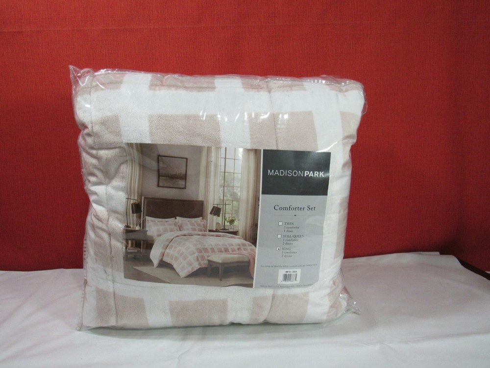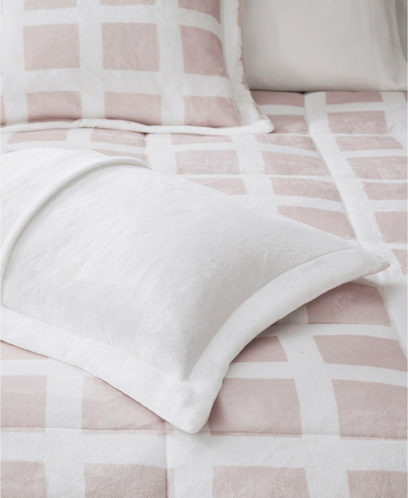Madison Park Mills 3-Piece Blush King Plush Comforter Set T4102487 Sleep soundly in the pure plush comfort of the Madison Park Mae Plush Comforter Set. The comforter features a geometric print on the plush face with a solid white reverse to create luxurious look and feel. Dimensions: comforter 104" x 90", shams 20" x 36" Set includes: 1 comforter, 2 king shams Polyester Machine washable Imported