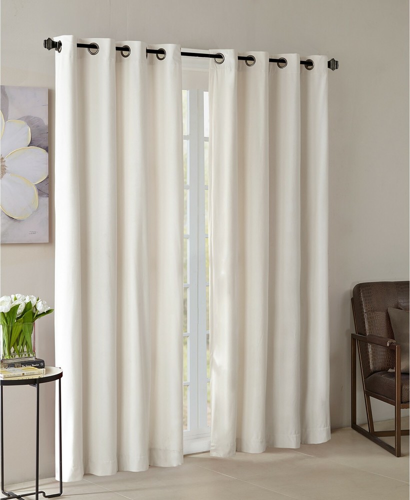 Color: Ivory Size: 50" x 95" Add subtle luster to your room with the Monroe window panel from Madison Park. The plush velvet finish provides soft texture, beautiful sheen and easy care for a contemporary take on simple sophistication. Dimensions: 50" x 95" Fabric: polyester Grommet top Lined for room darkening and energy efficiency NOTE: photo displays two panels for a finished look, but this item contains only one panel. Each panel is sold individually. Machine washable Imported