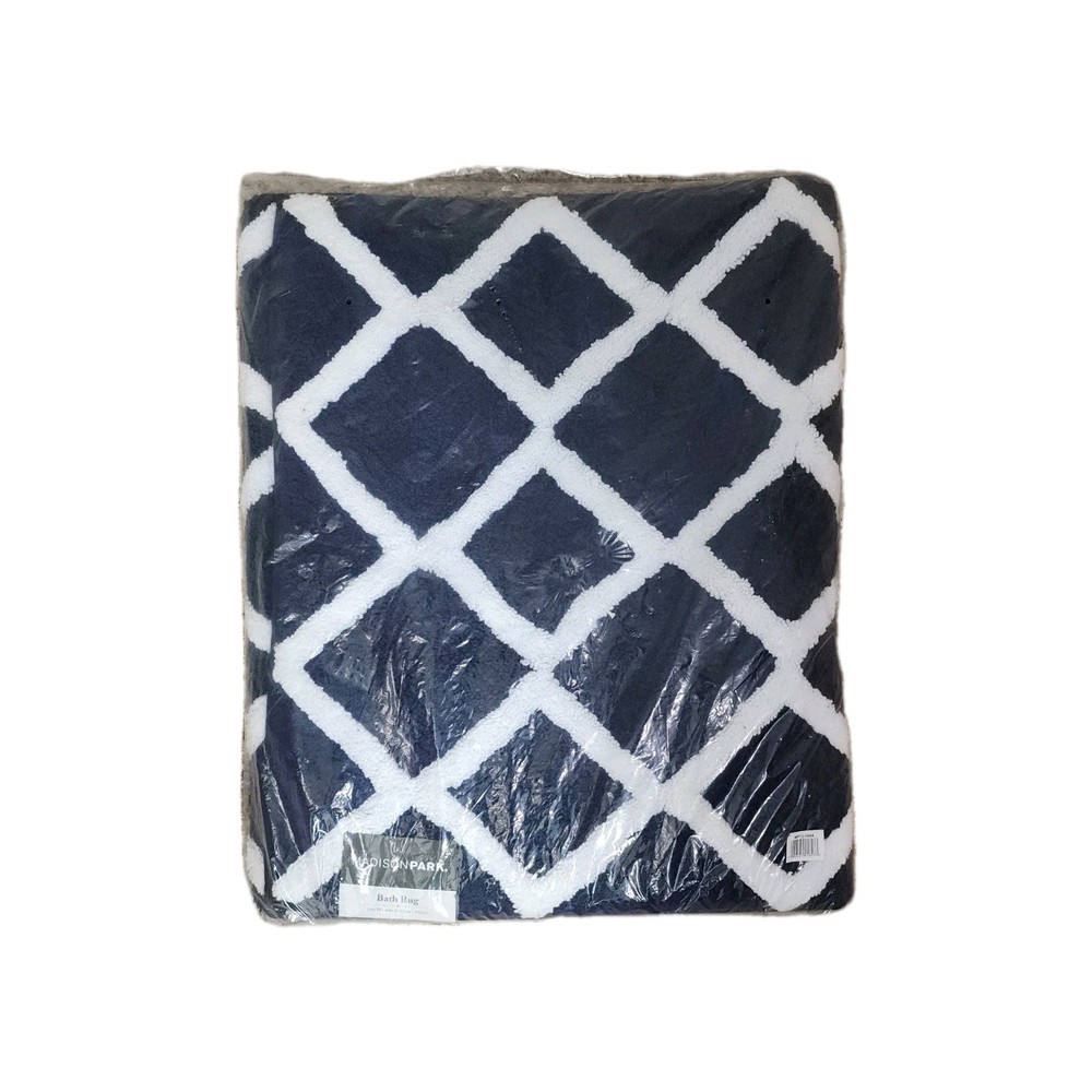 Madison Park Bittman Reversible High Pile Tufted Bath Rug Navy 24x60
