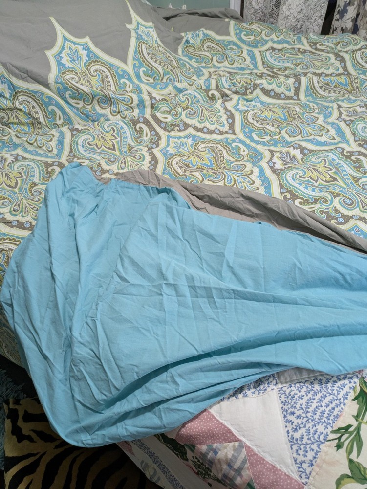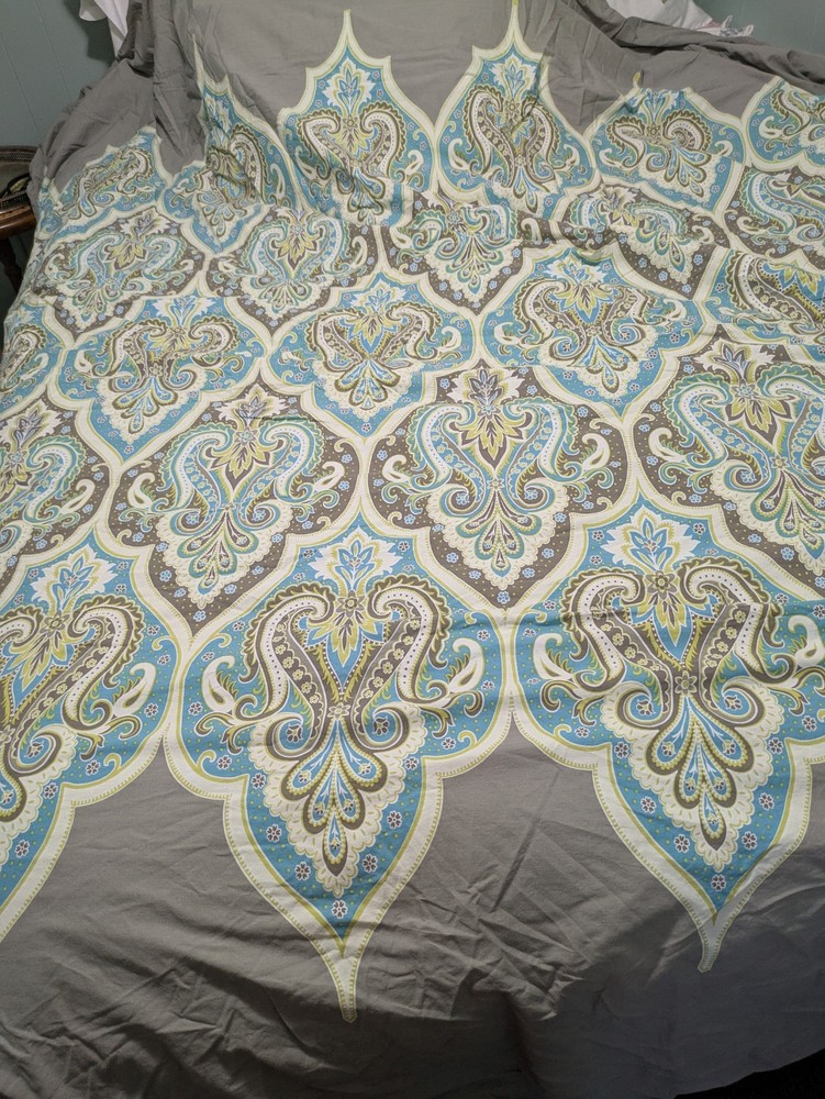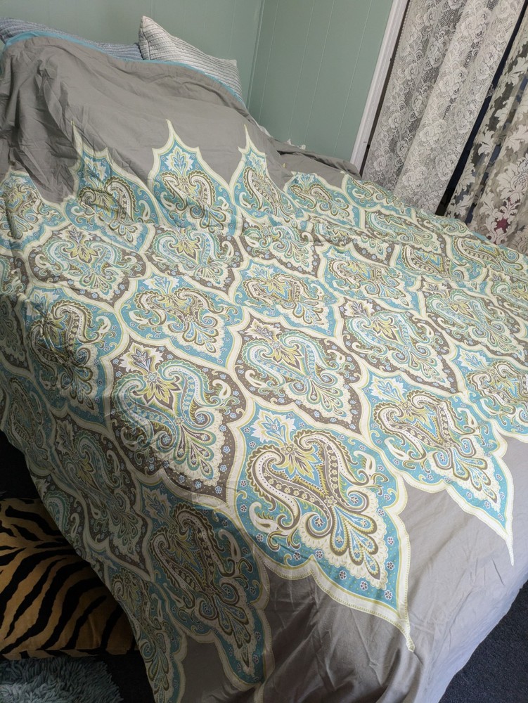 Absolutely love this duvet cover! The turquoise and gray medallion paisley design is stunning, and the quality is fantastic—soft yet durable. It’s in perfect condition, just as described, and fits my queen bed beautifully. Super happy with the purchase, especially knowing it’s from a clean, pet-free home. Highly recommend!