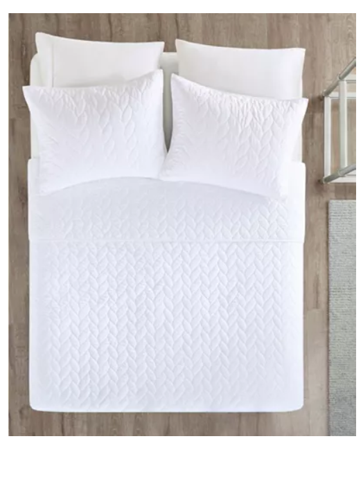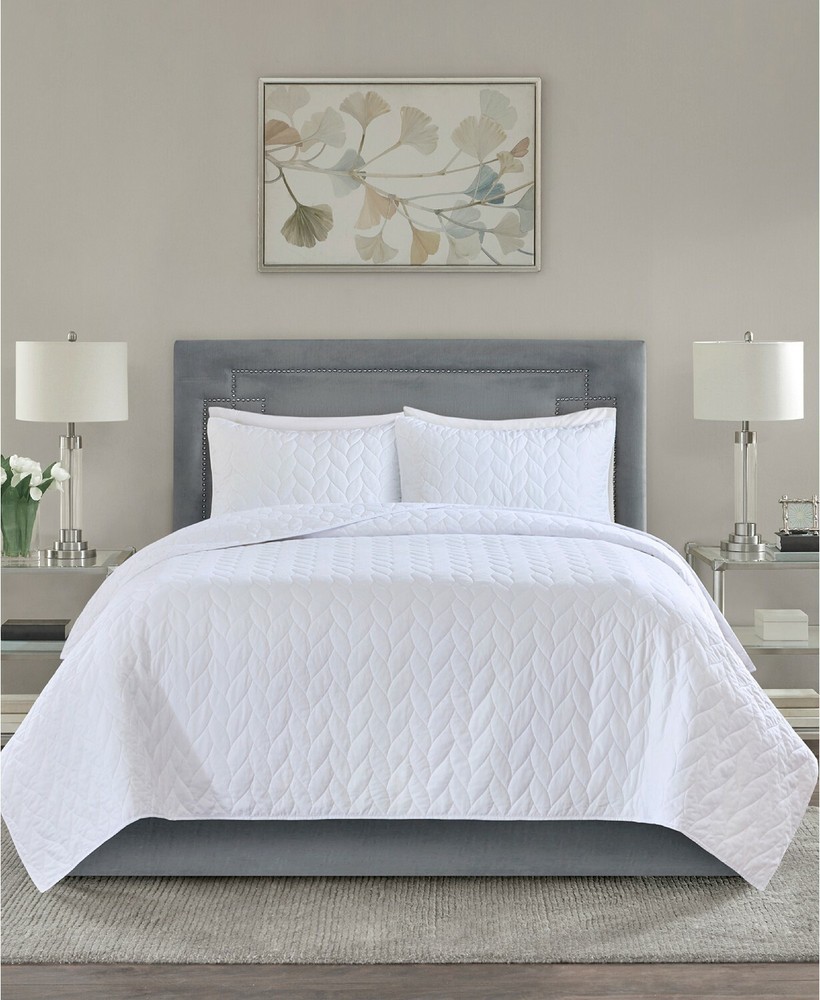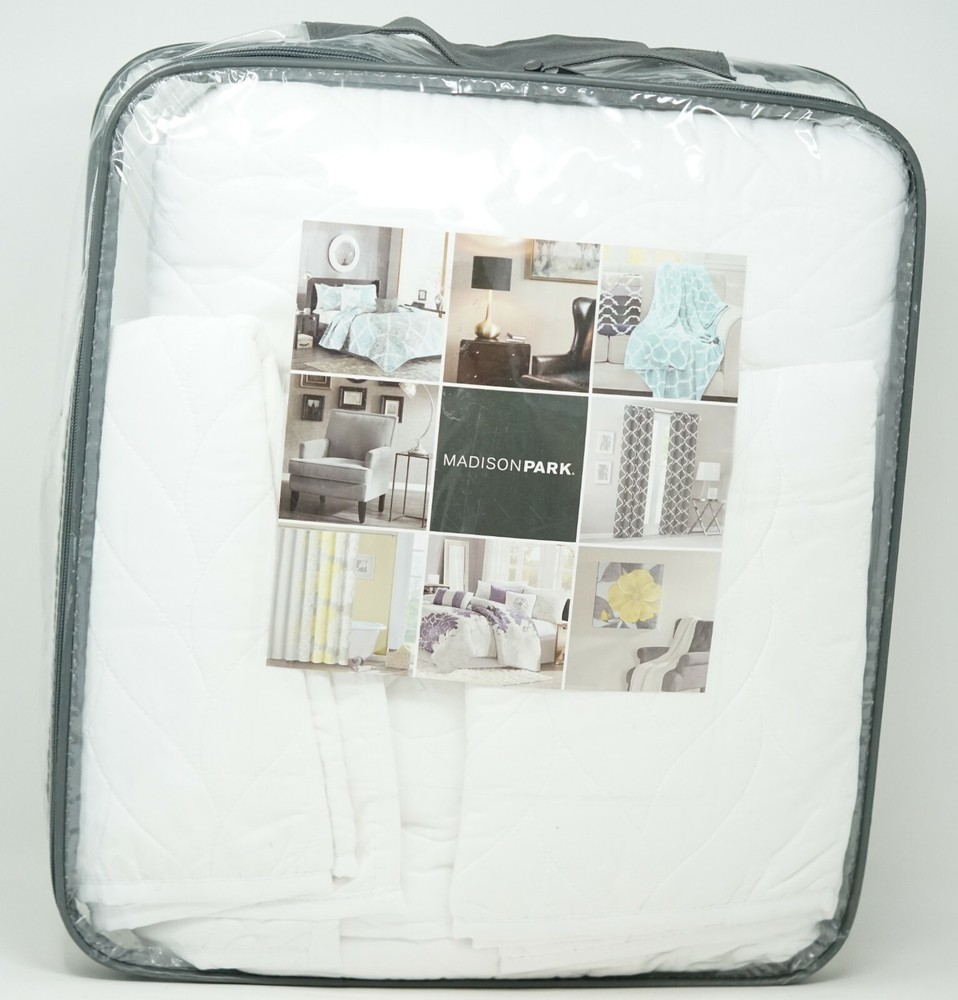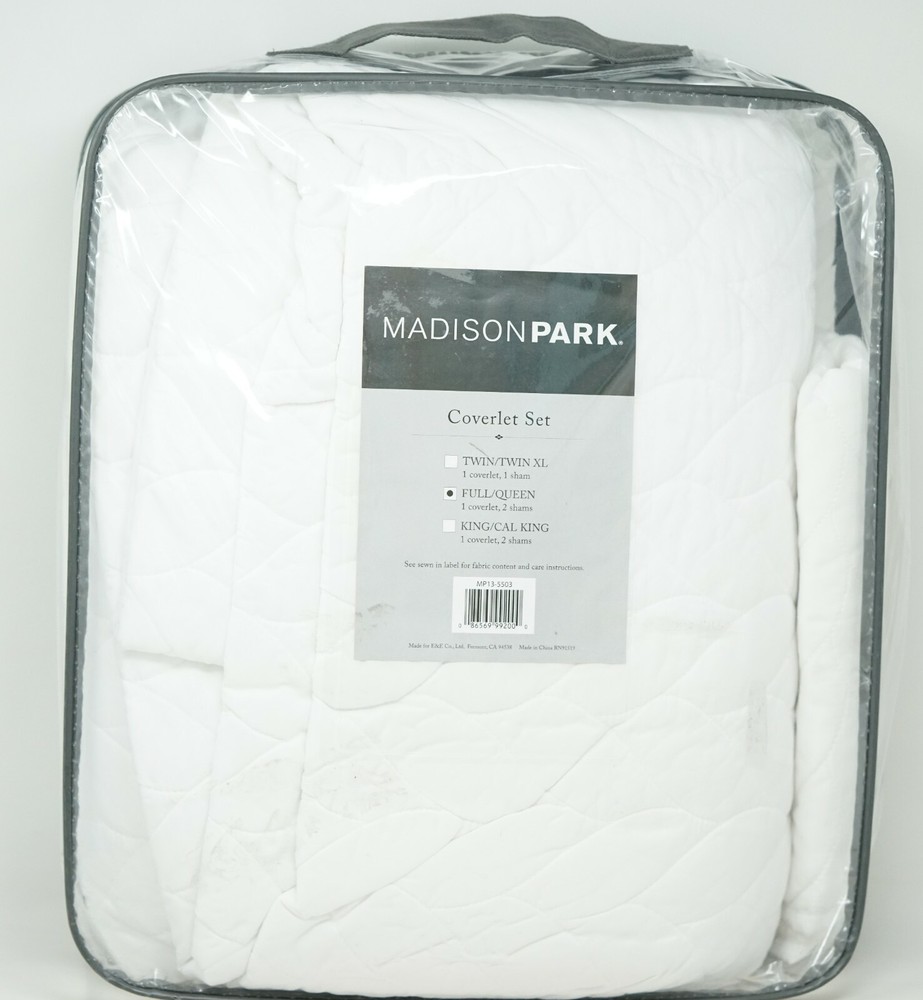 Brand New - Refolded Color: White Size: Full / Queen The Madison Park Noel 3 Piece Coverlet Set offers a luxuriously comfortable update to your bedroom. This white quilted coverlet and matching shams feature geometric quilting in a leaf-inspired pattern to create a textural look with dimension and charm. The prewashed fabric providing incredible softness and comfort. coverlet, 2 standard shams coverlet:90" x 90", standard sham (2):20" x 26" + 0.5" Solid - Geometric 85 gsm Microfiber from 100% polyester; Coverlet fill: 90% cotton, 5% plyester,5% other fibers Machine Washable Imported