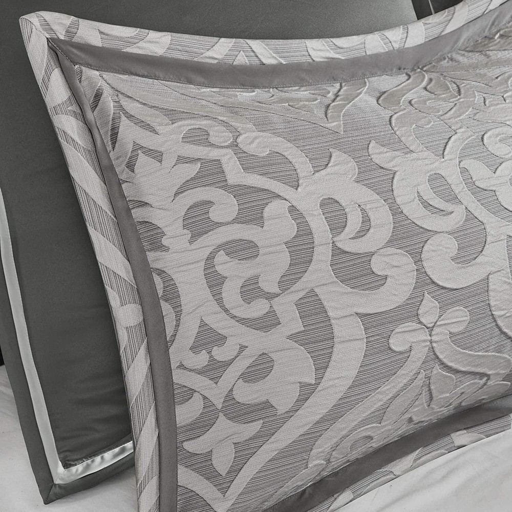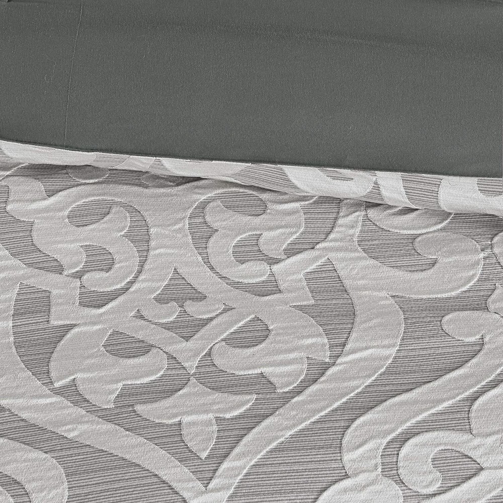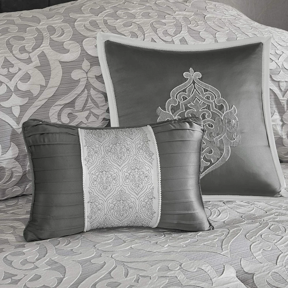 100% Mircrofiber Add a touch of class to your bedroom with the Madison Park Odette 8 Piece Jacquard Comforter Set. The luxurious textured jacquard comforter and shams flaunt a gorgeous damask medallion design. With the right amount of hypoallergenic down alternative fill to keep you warm and comfortable year round. Set includes: 1 Comforter:104"W x 92"L, 2 King Shams:20"W x 36"L +2"D, 1 Bedskirt:72"W x 84"L+15"D, 2 Decorative Pillows:12"W x 18"L/18"W x 18"L, 2 Euro Shams:26"W x 26"L +2"D Care instructions: Machine wash, delicate and separately. Tumble dry low. Spot clean decorative pillows. You can return any item within 14 days of when the item is received (per the tracking information). You can either exchange the item for a new one (if there are others in stock) or choose cash minus the original shipping fee and not including return shipping (buyer pays return shipping). In order to return an item it must be in the same condition as when received (i.e. not worn, scratched, etc.) Please try to avoid returns by asking any questions you have about the item before making a purchase. All advertised sizes come directly from the manufacture sales tags. The seller will not make any recommendations concerning which size will fit the buyer well. The seller will only provide appropriate measurements when requested by the buyer. Buyers should try on the item (or a similar item) at a local retailer before purchasing if he/she has questions as to whether or not it will fit well. If you need to return an item due to sizing issues, follow the seller's standard return policy. A high percentage of items shipped to Express Parcel Services or to the 33126 Zip Code are lost or arrive over a month after the scheduled arrival date. Therefore, any buyer wanting packages sent to Express Parcel Services or the 33126 Zip Code will be assessed an additional fee to cover the cost of insuring the package.