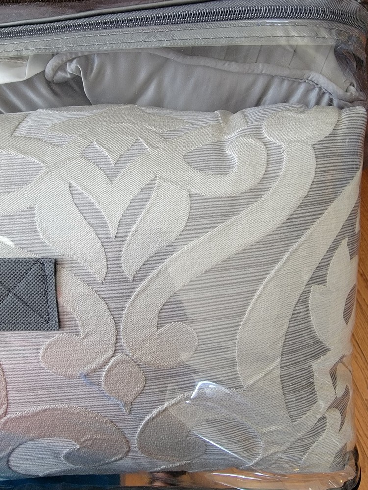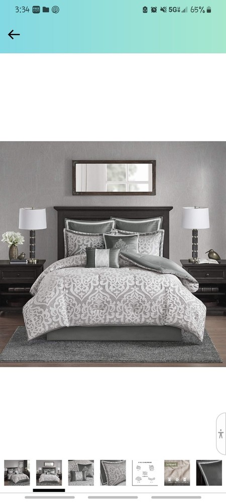100% Polyester FEATURES - Add a touch of class to your bedroom with the comforter set. The luxurious comforter and shams flaunt a gorgeous medallion design with striations on the satin ground that add dimension to the lavish look. MEASUREMENT - 1 Comforter - 104(W) inches x 92(L) inches, 2 King Shams - 20(W) inches x 36(L) inches - 2 inch flange each, 2 Decorative Pillows - 12(W) inches x 18(L) inches/18(W) inches x 18(L) inches, 2 Euro Shams - 26(W) inches x 26(L) inches - 2 inch flange each MATERIAL DETAILS - Polyester jacquard with damask stria texture comforter and shams, microfiber reverse, 8oz/sq yard polyester filling, charmeuse bed skirt and euro shams, embroidered pillow with decorative cording, polyesting filling