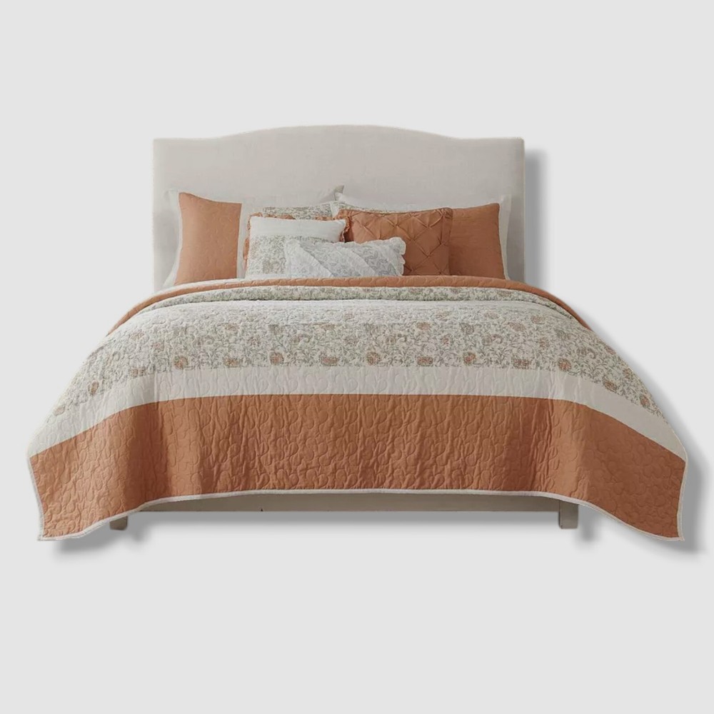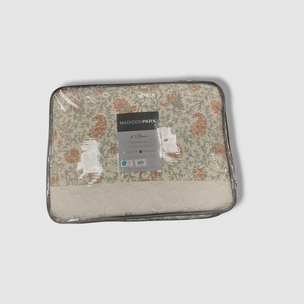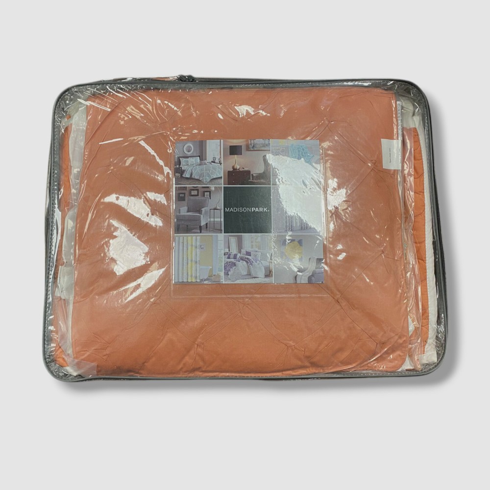 Madison Park Orange Reversible Stella Percale Quilt Set- King/California King Description Set includes: king/California king quilt (104" x 94"), two king shams (20" x 36") and three decorative pillows (16" x 16", 18" x 18", 12" x 18") Cotton, polyester Machine wash; pillows: spot clean Imported About Us We sell only 100% authentic clothing from new with tags to gently used. We have a 100% authentic or money back guarantee on every item we sell. Items are listed daily so make sure to put us on your favorite! We have been in business for over 10 years selling tens of thousands of designer items. We strive to meet your designer needs at a quality price! Payment Shipping Returns Payment accepted via paypal, credit/debit card. Shipping is usually within 24 hours of purchase (M-F). Super fast service. Tracked delivery. 100% satisfaction guaranteed. Please review our eBay return policy for more details.