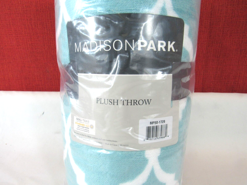 Madison Park Oversized 60 x 70 Ogee-Print Aqua Throw T4103707 Styled in ultra-soft MicroLight plush finished with a classic ogee print, this cozy throw from Madison Park lends a touch of contemporary elegance and comfort to any space. Dimensions: 60" x 70" Our unique knitting technology allows us to craft an irresistibly soft, ultra lofty throw that is light enough to be used during even the warmest summer months and is perfect as a layering piece during the coldest of winters Fabric: polyester 220 grams per square meter Machine washable Imported